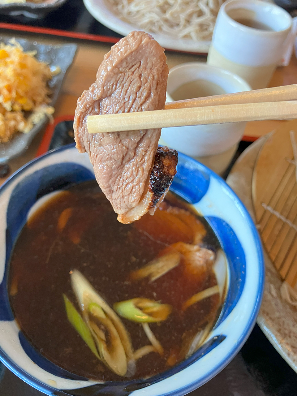 蕎麦は食べやすい大きさにカットされていて、とてもモチモチとした食感になっていました。