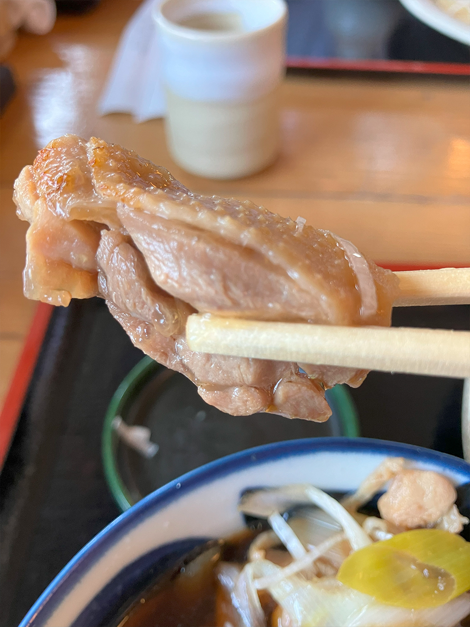 出汁は鴨肉の脂とネギの風味がよく絡んでいて、とてもさっぱりとしています。