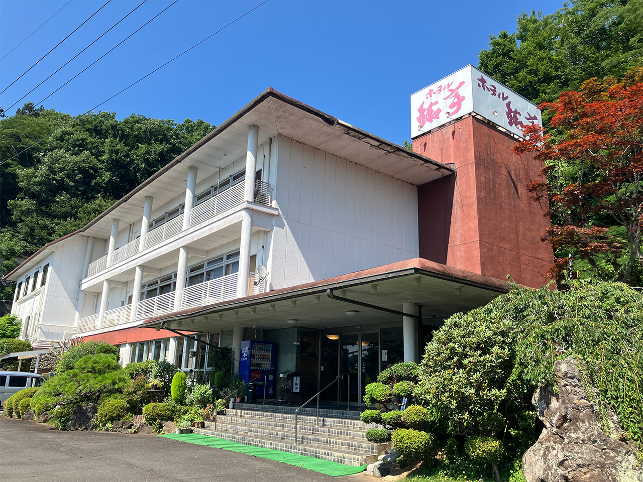施工現場の久慈川を挟んで向かいにあります「鮎の里 山方宿 ホテル鮎亭」さんをご紹介します。