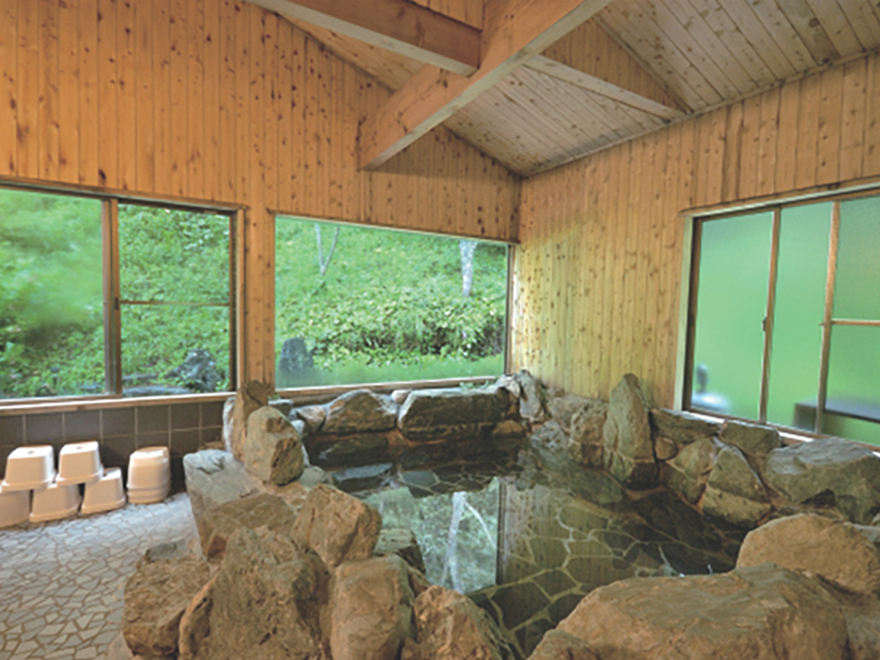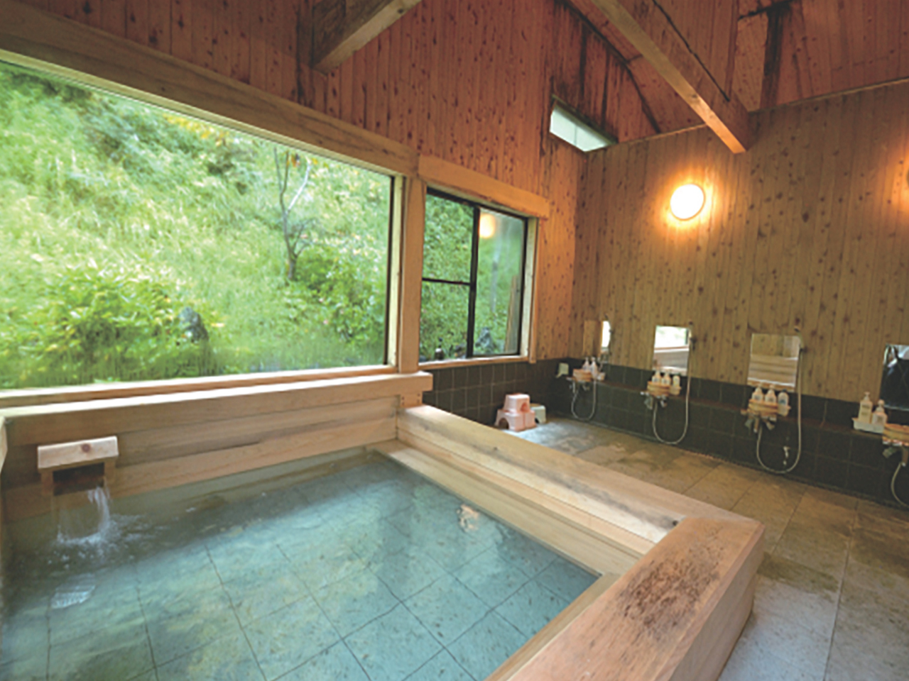 清流久慈川の伏流水を地下から汲み上げたやわらかな肌触りのお湯。