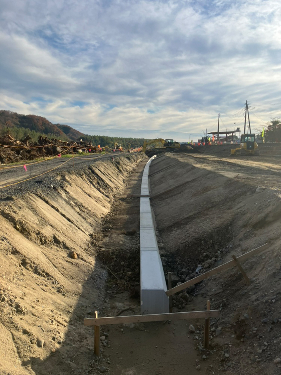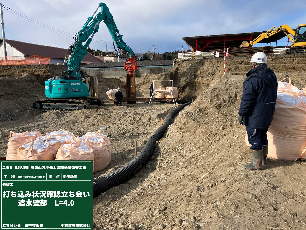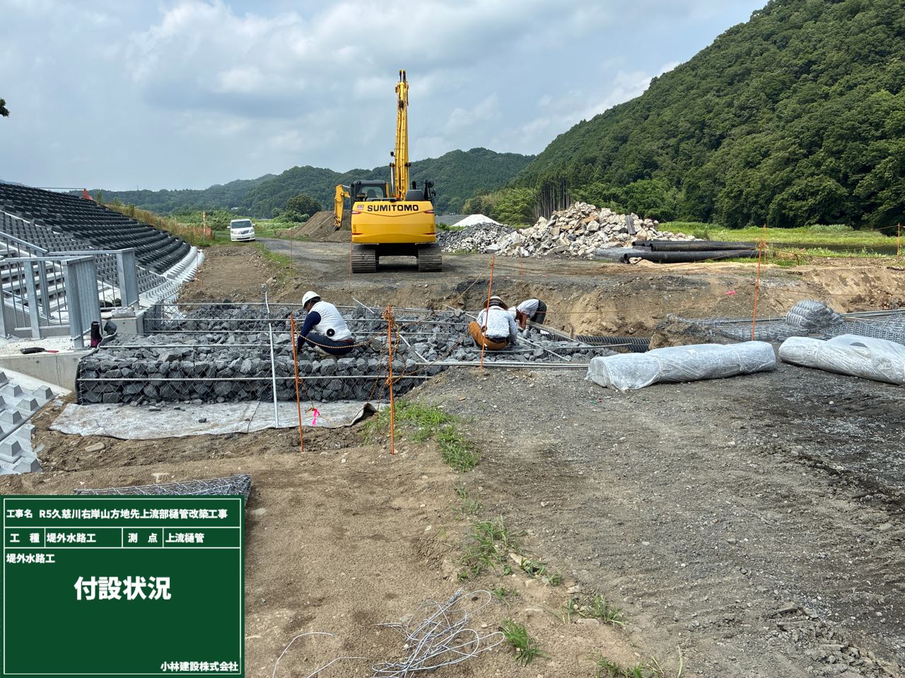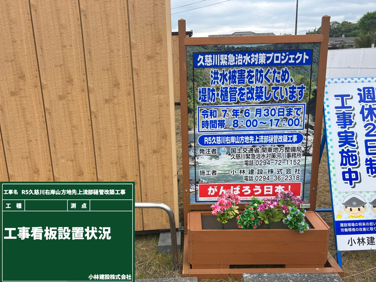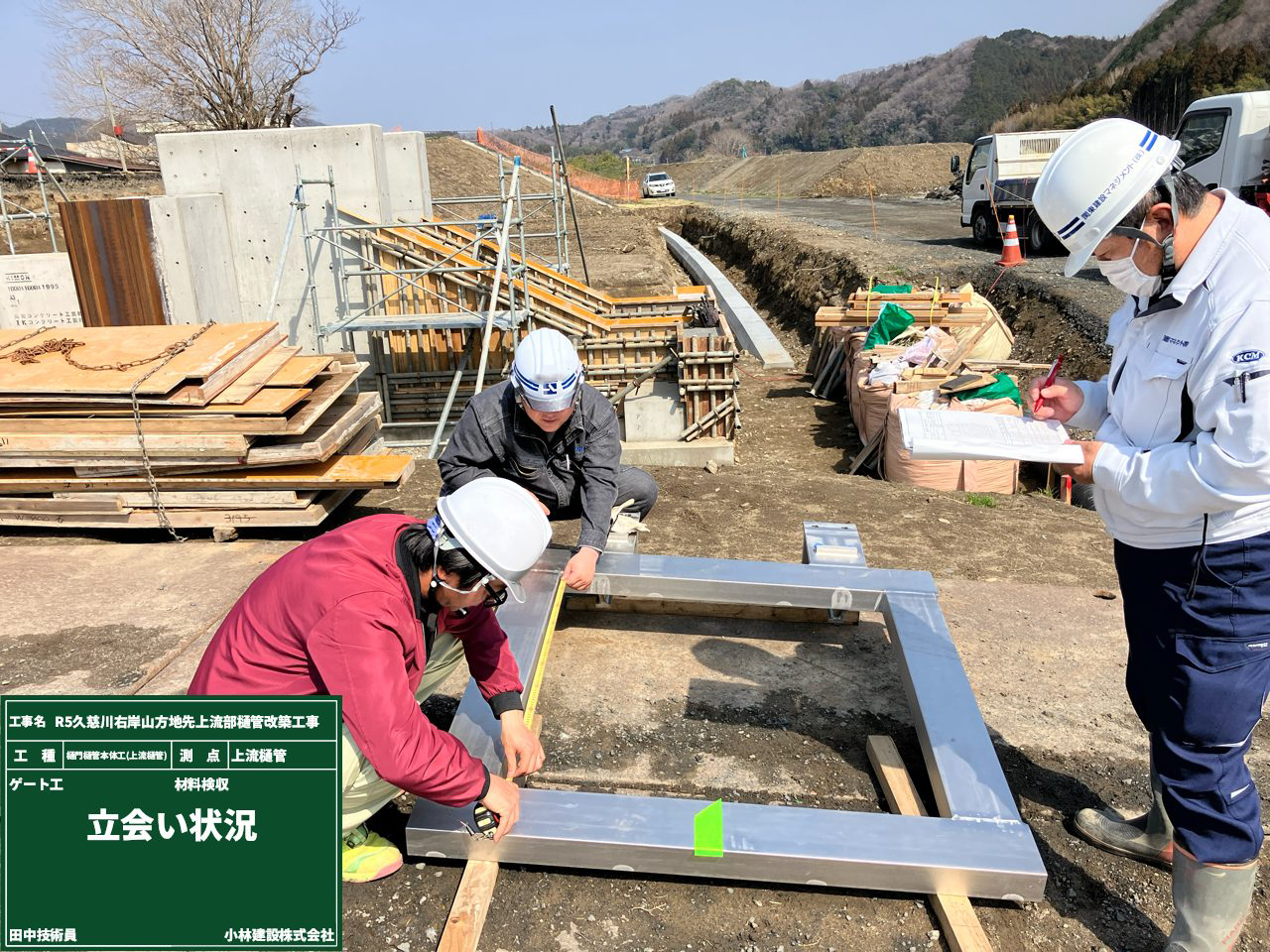 昨今の異常気象や、突然の大雨で久慈川が増水した場合に堤内地側に逆流しないように今回の工事を行っています。