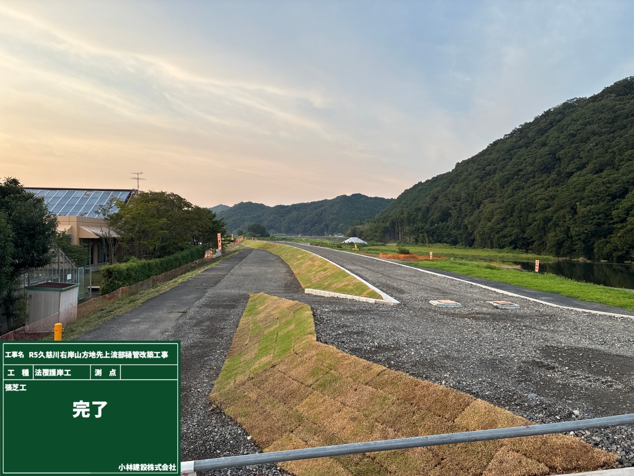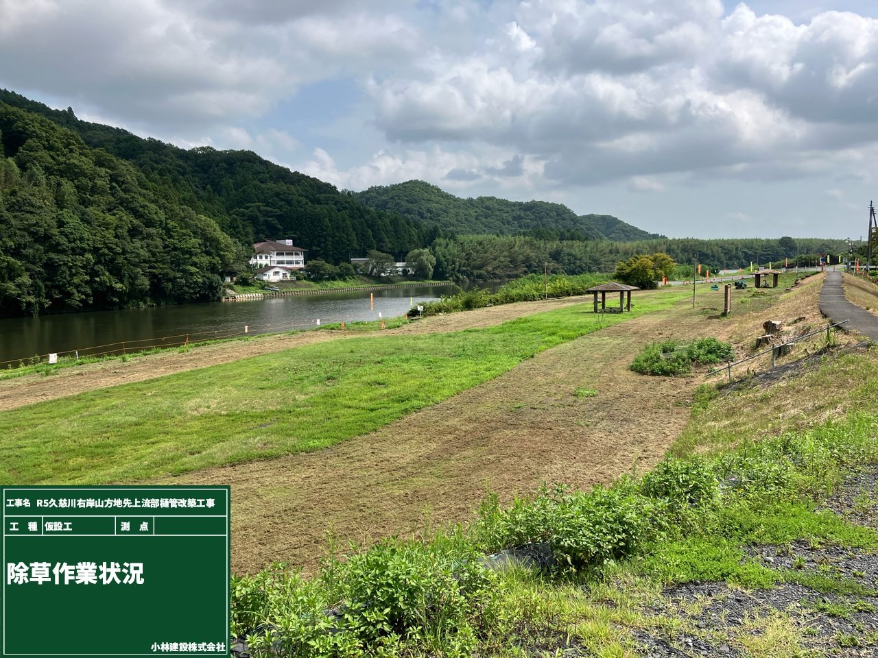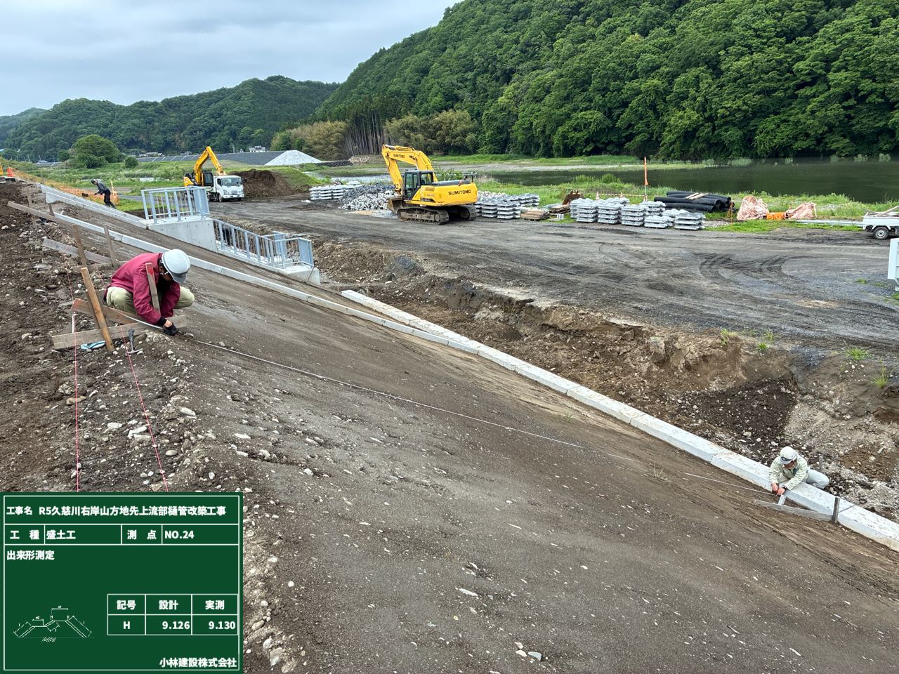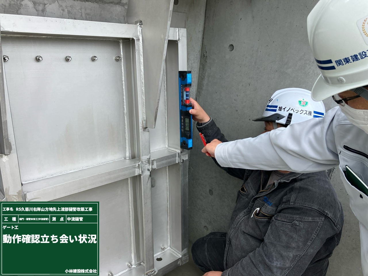 昨今の異常気象や、突然の大雨で久慈川が増水した場合に堤内地側に逆流しないように今回の工事を行っています。