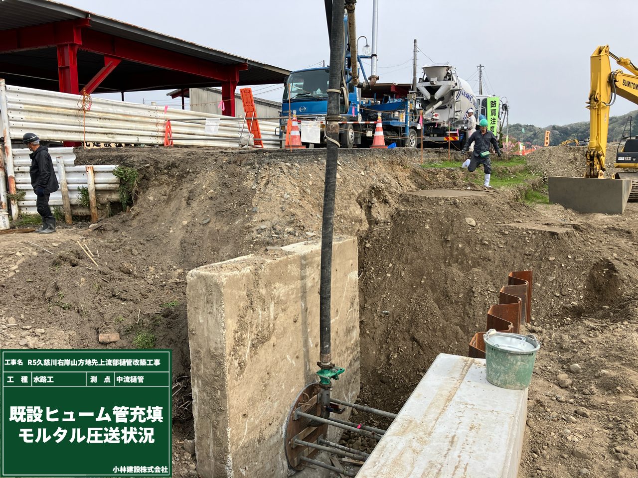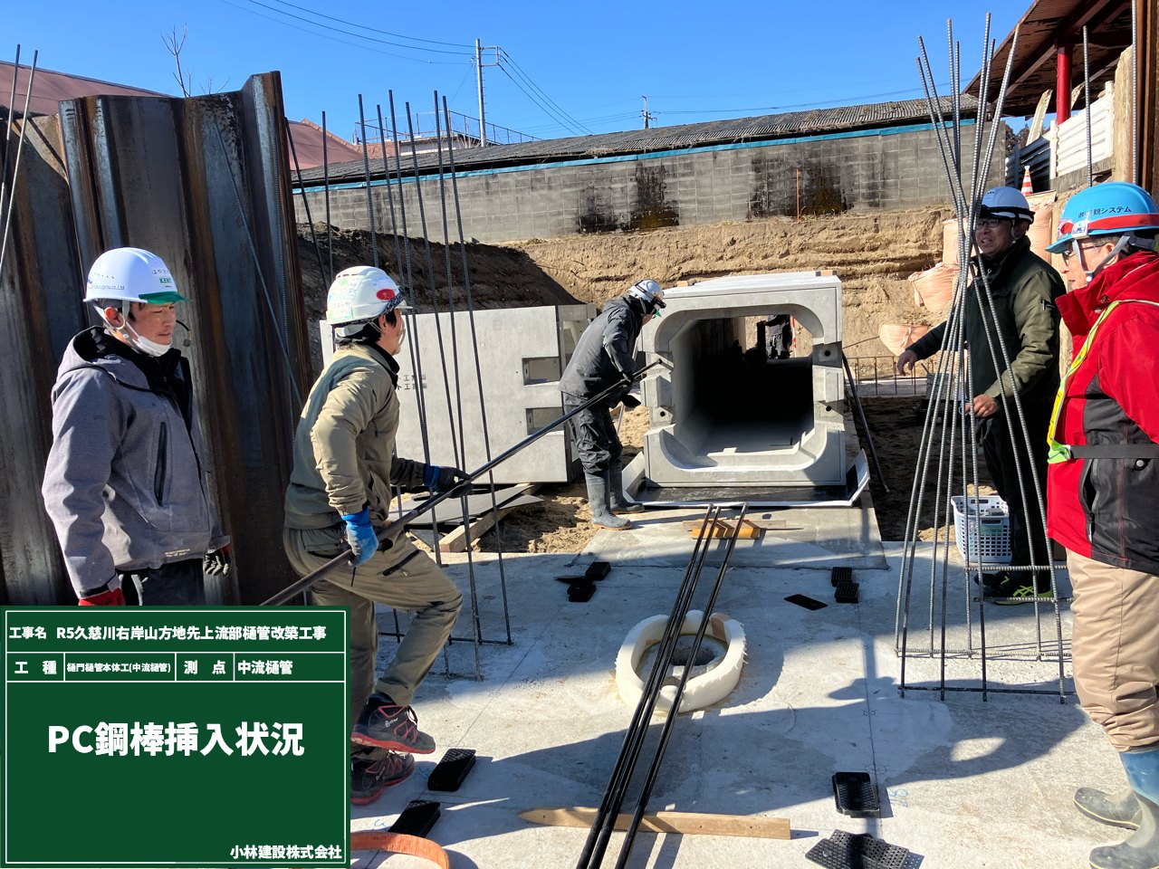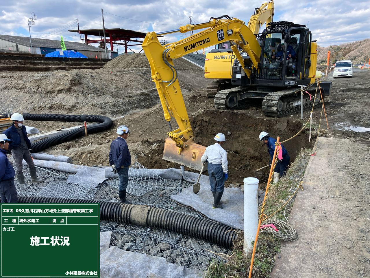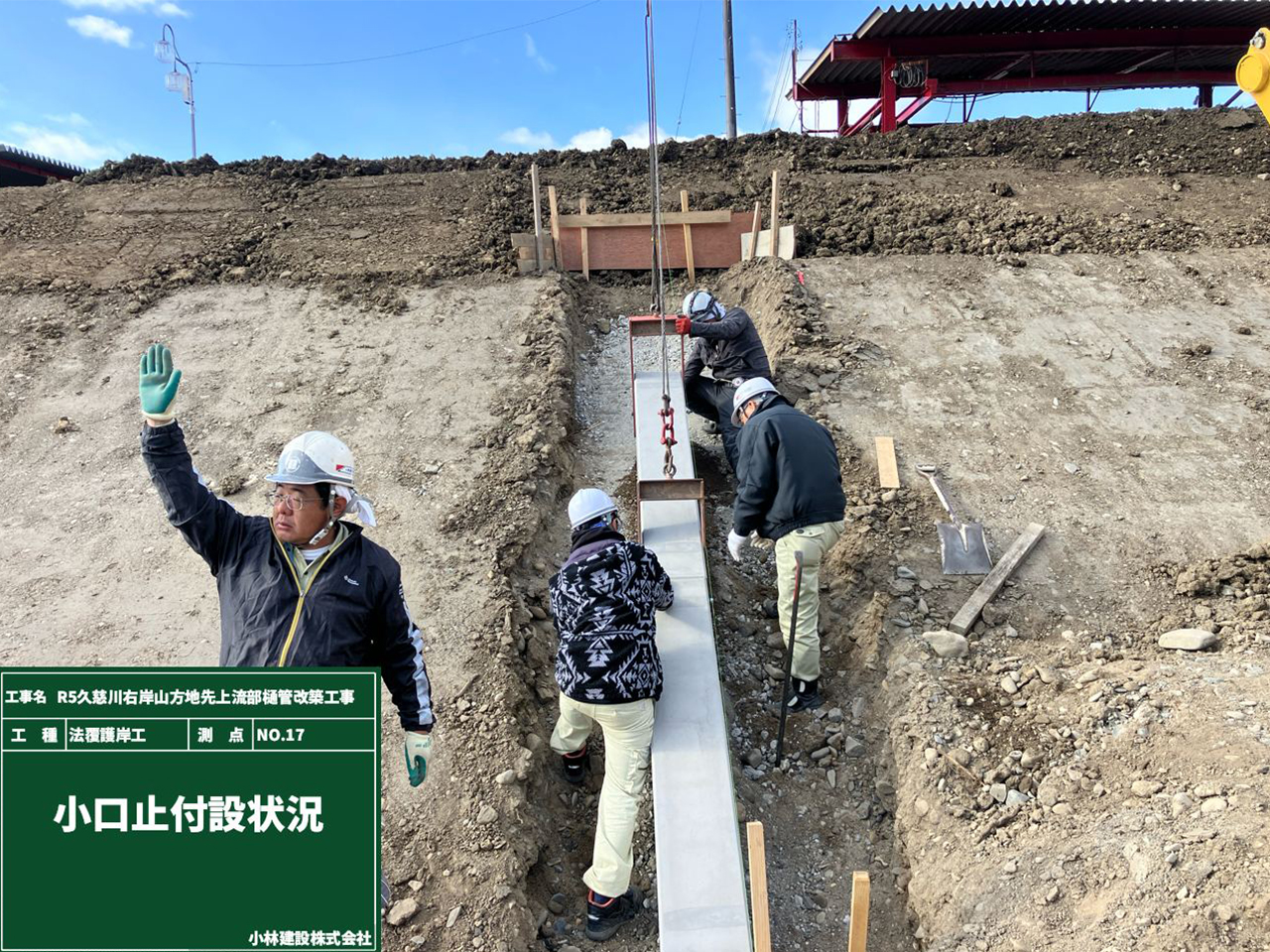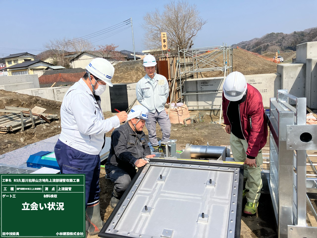 昨今の異常気象や、突然の大雨で久慈川が増水した場合に堤内地側に逆流しないように今回の工事を行っています。