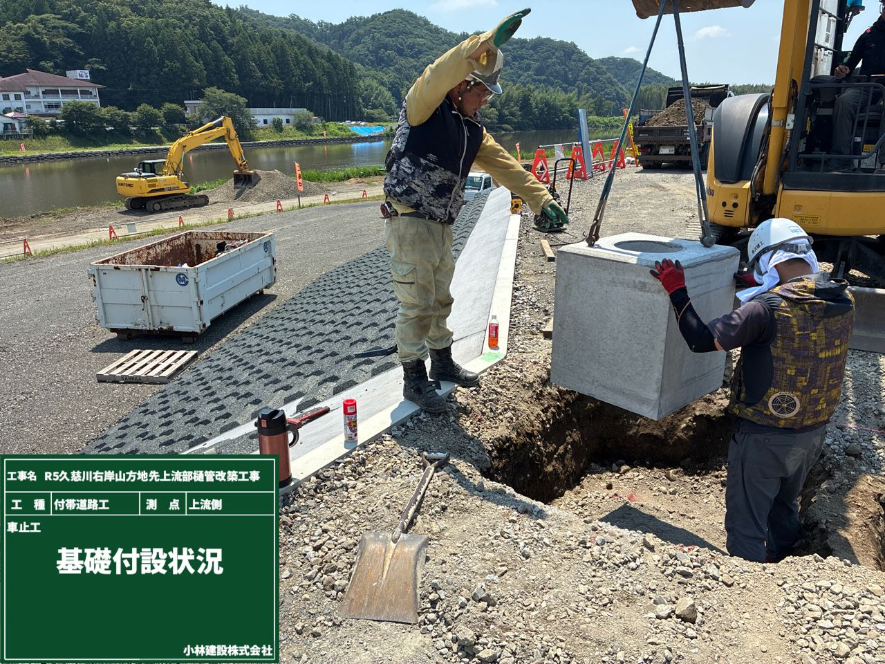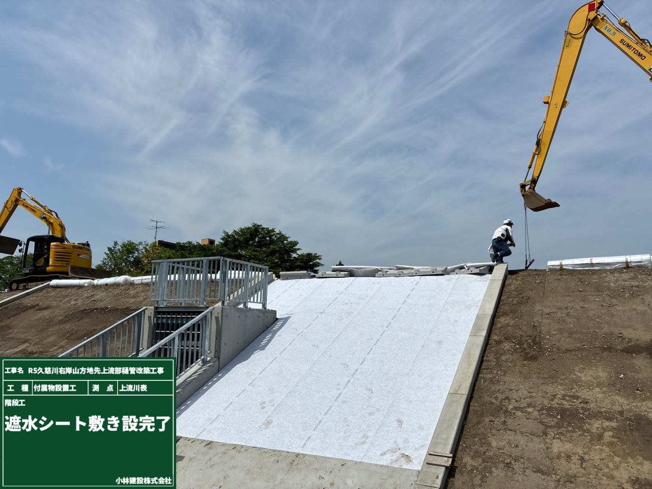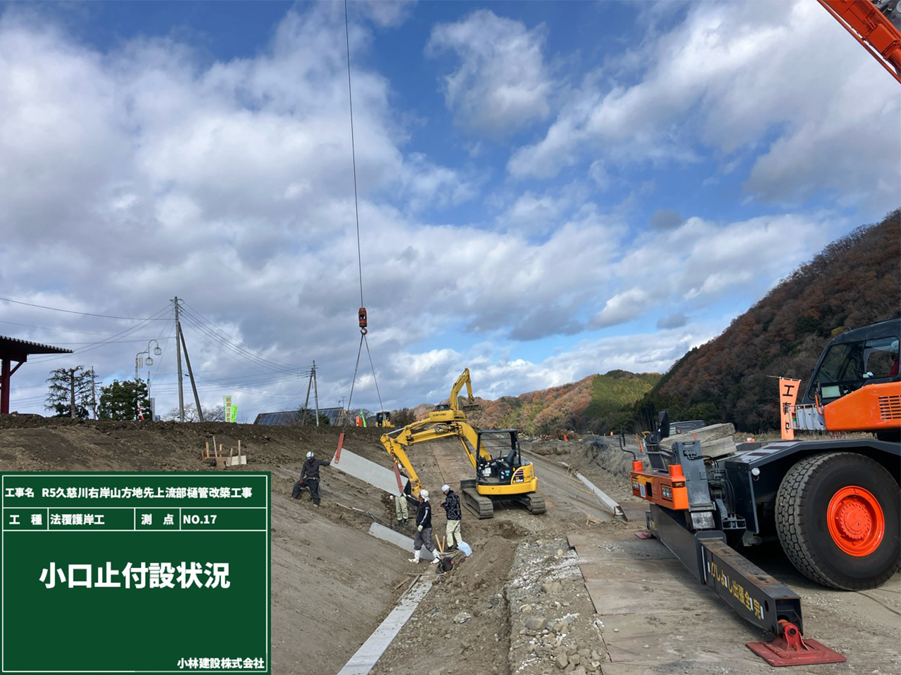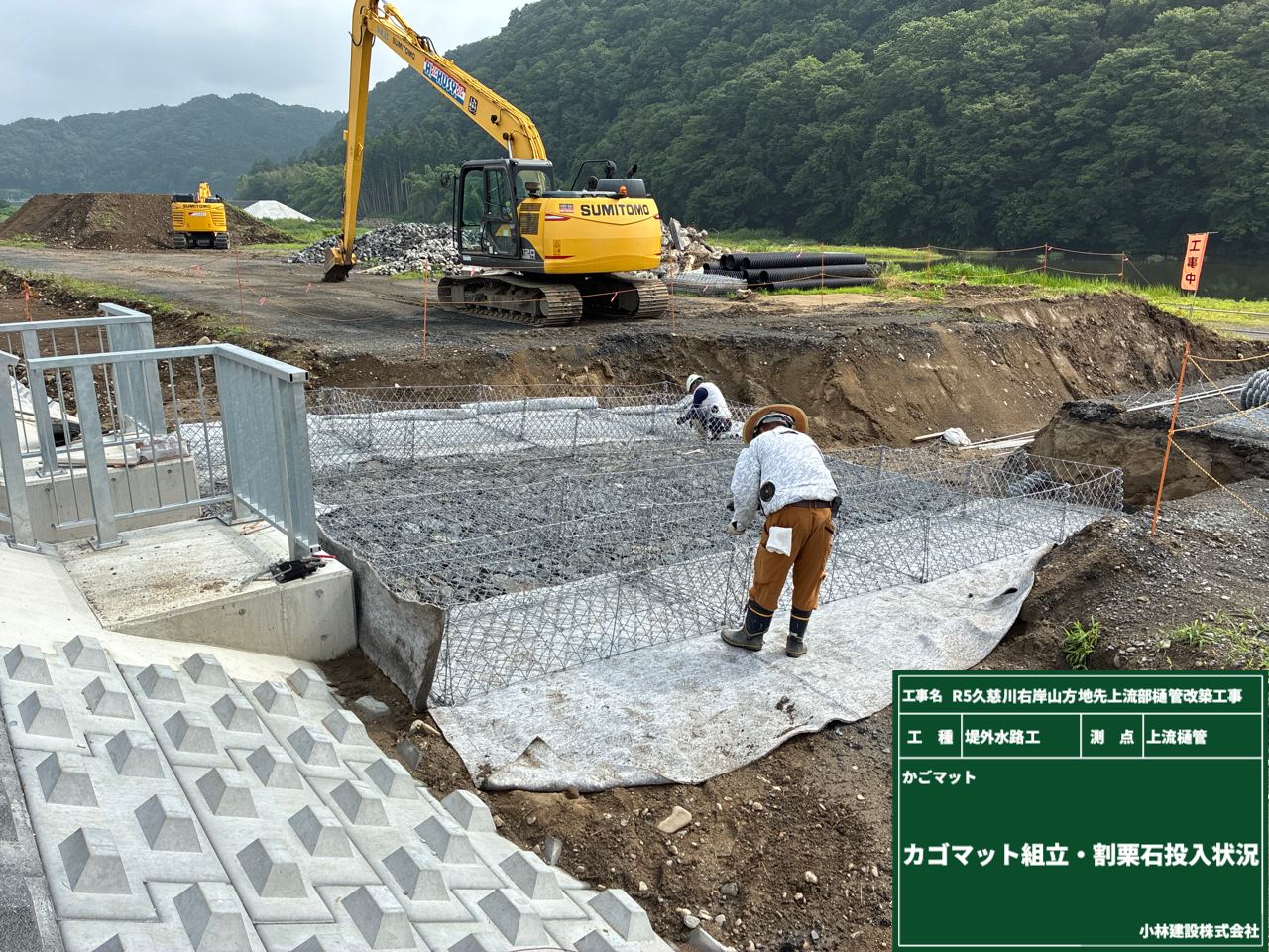 昨今の異常気象や、突然の大雨で久慈川が増水した場合に堤内地側に逆流しないように今回の工事を行っています。