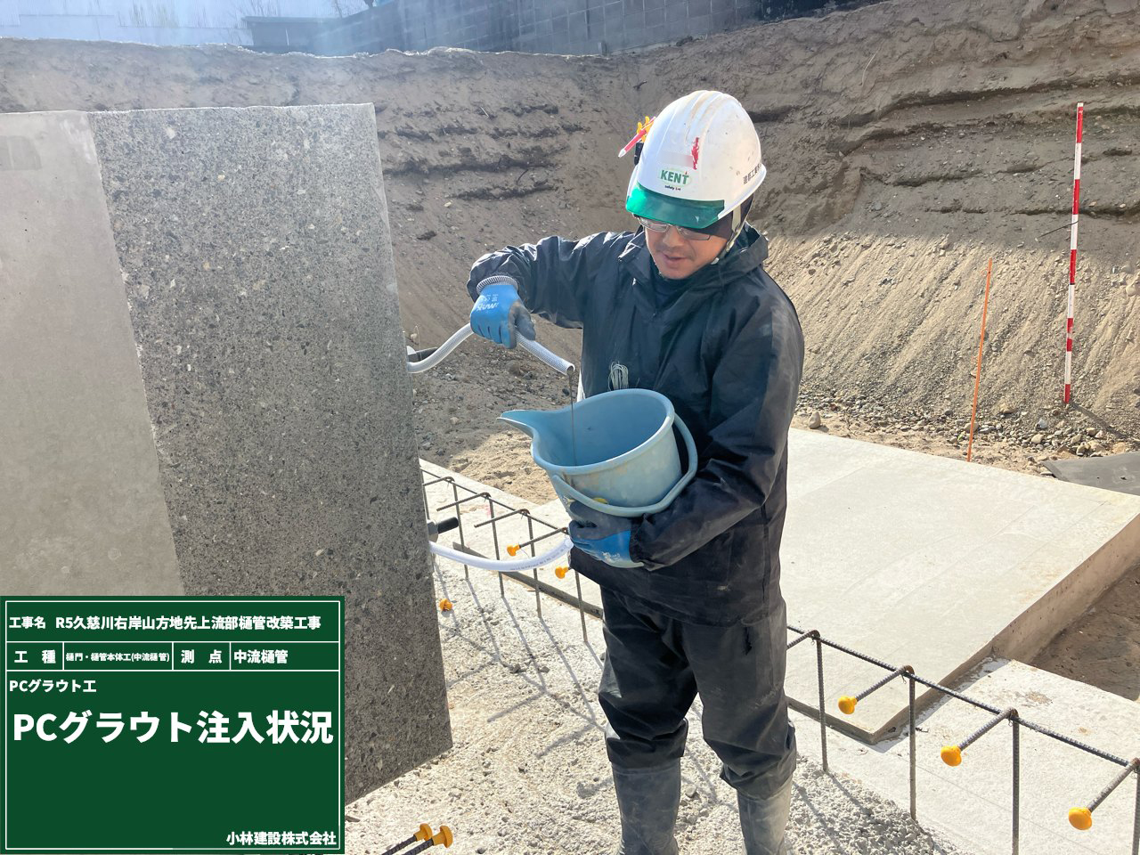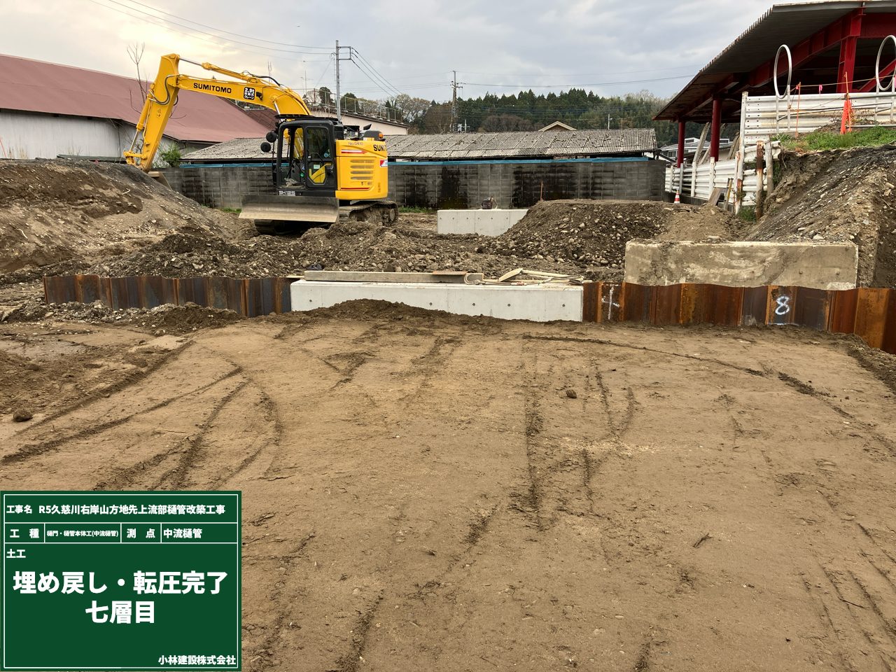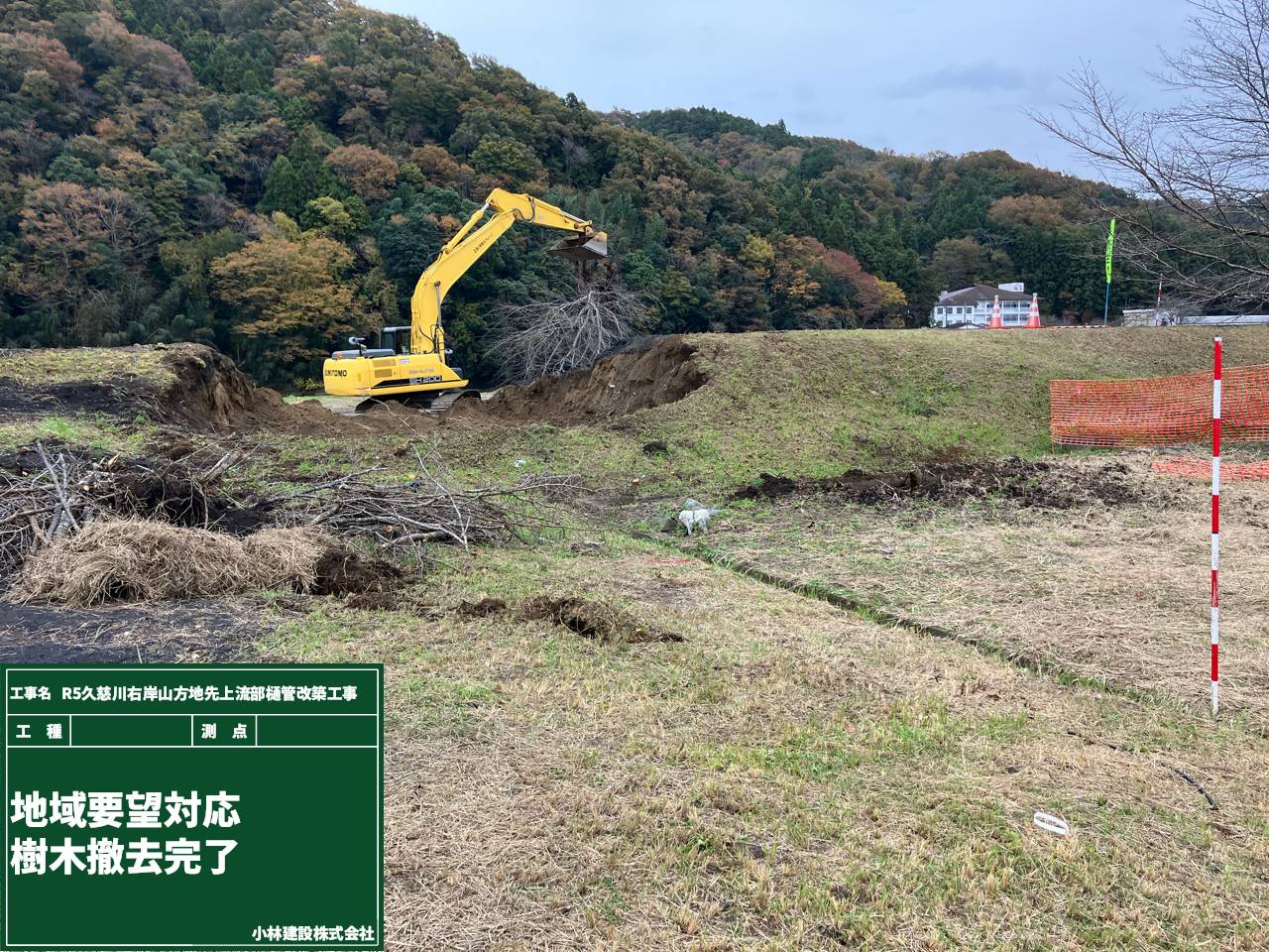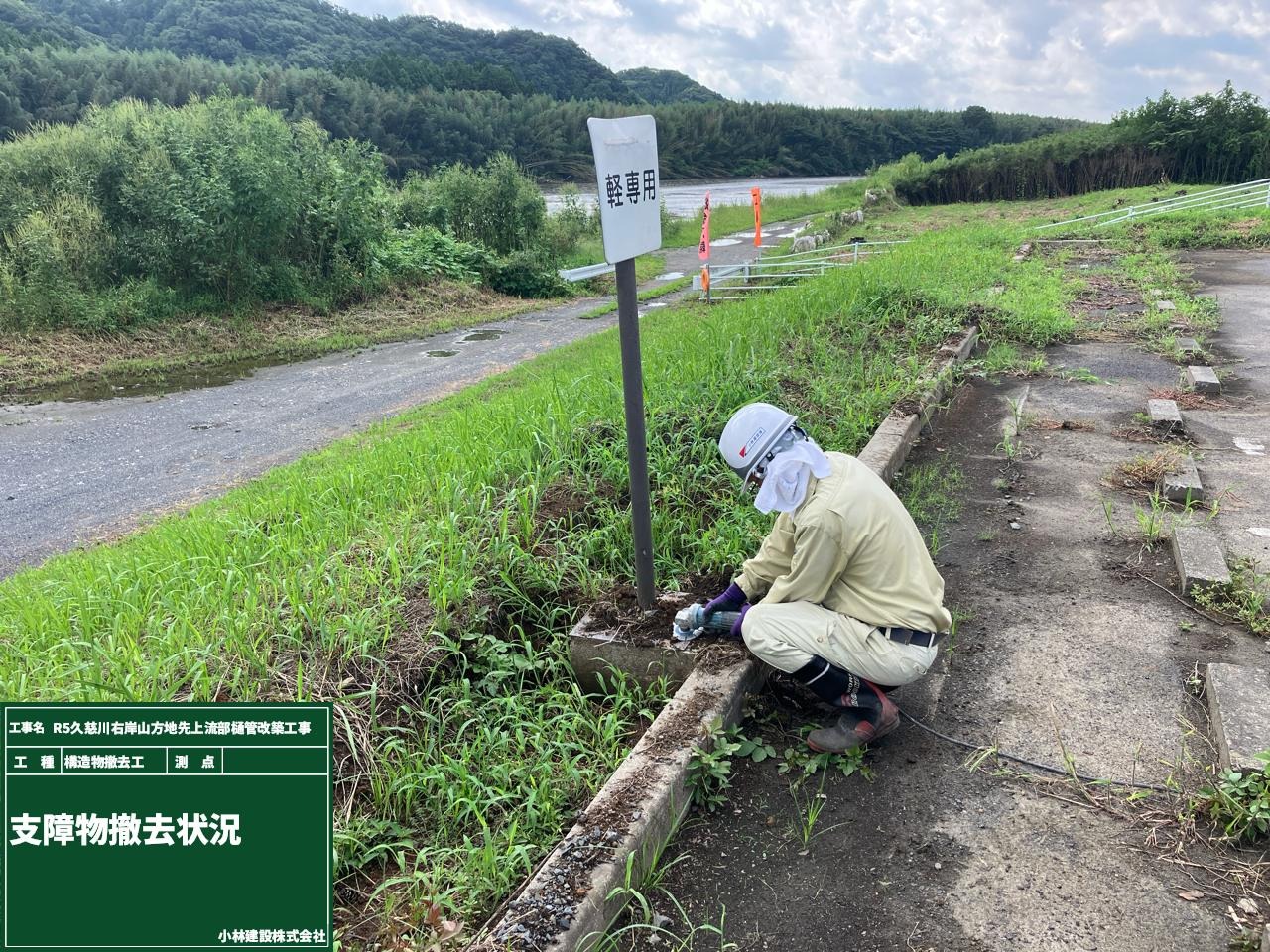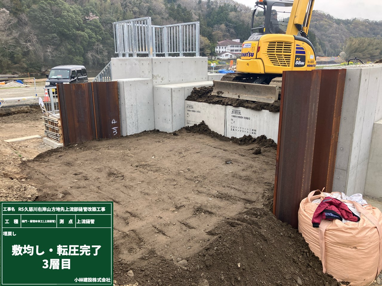 昨今の異常気象や、突然の大雨で久慈川が増水した場合に堤内地側に逆流しないように今回の工事を行っています。