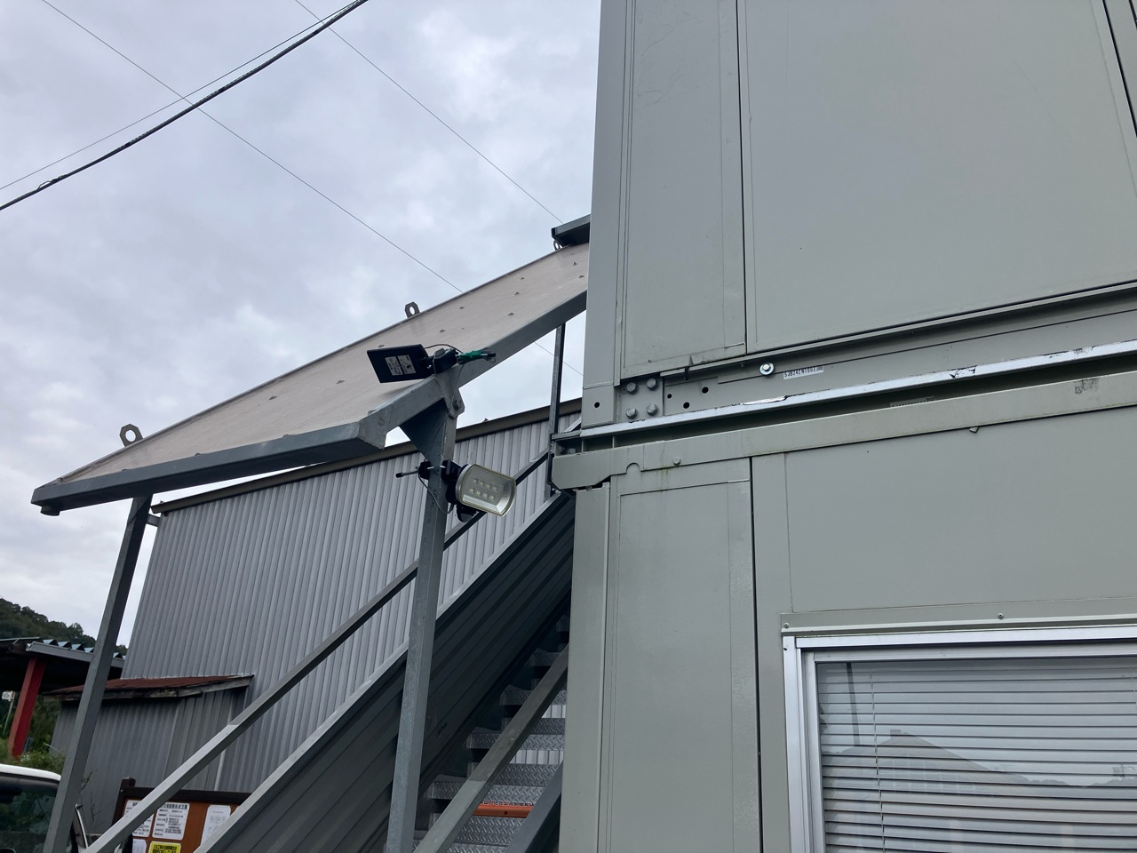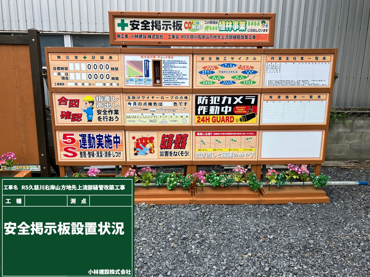 現場事務所を設置して、工事看板の設置と安全掲示板を設置しました。