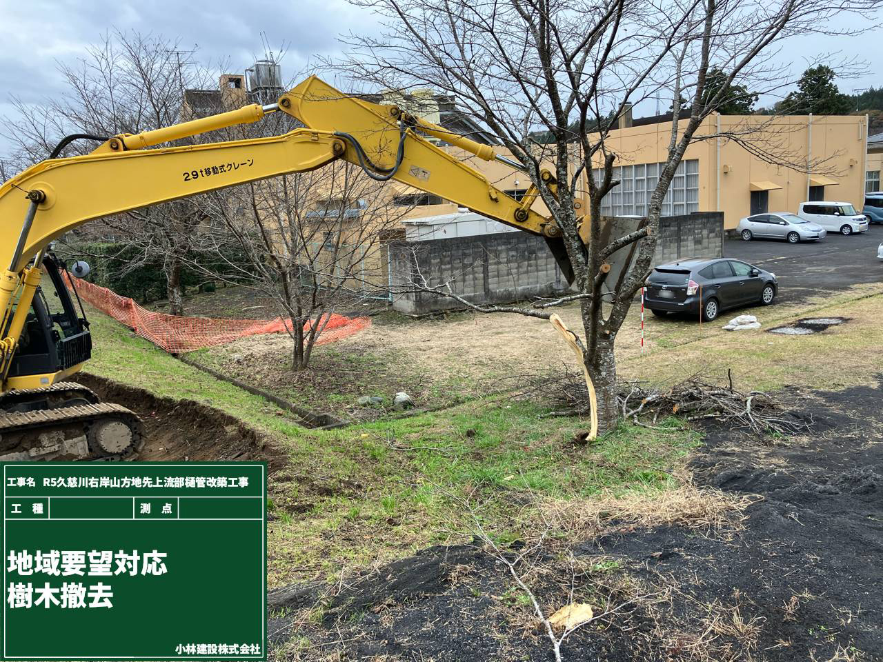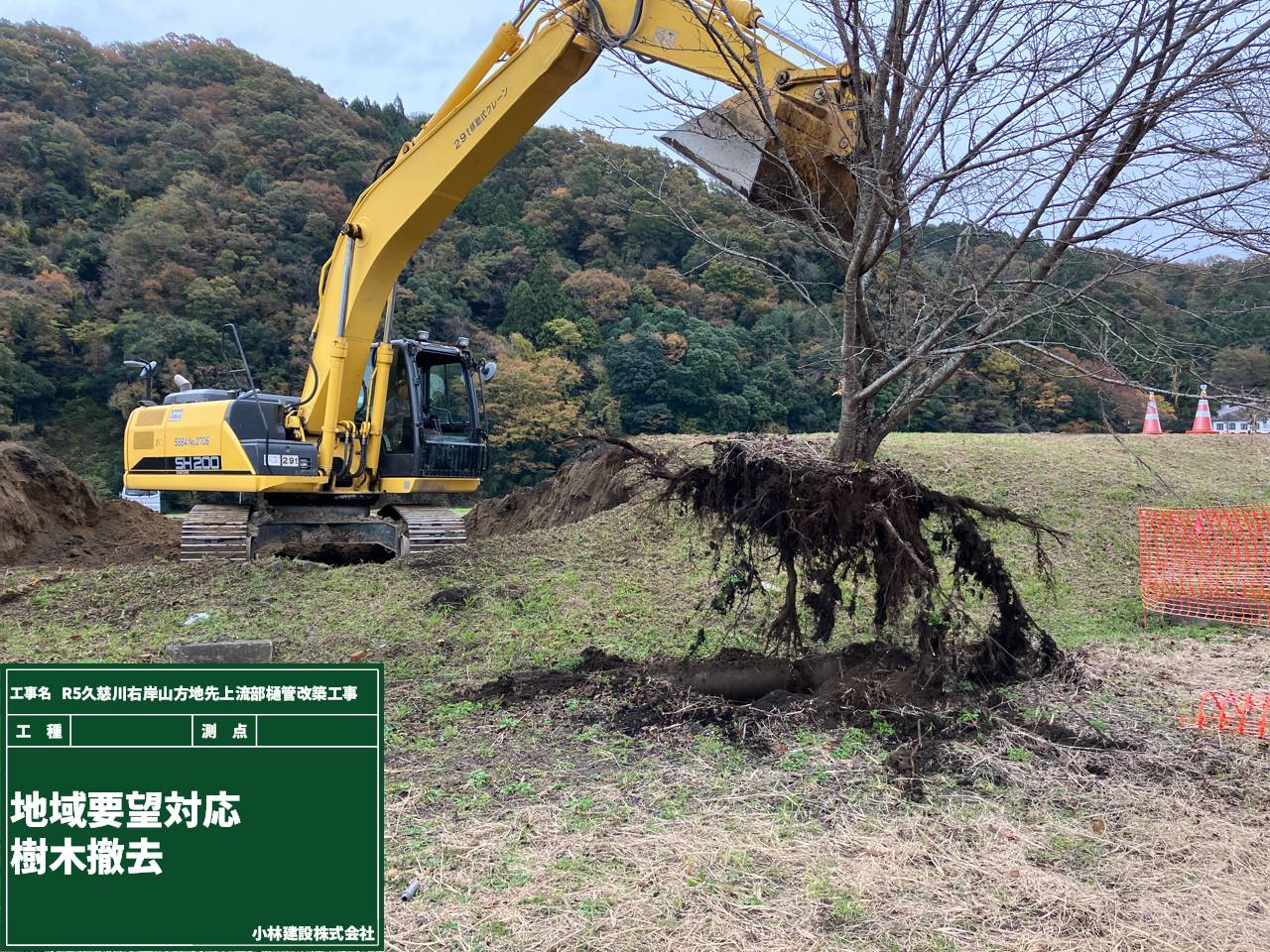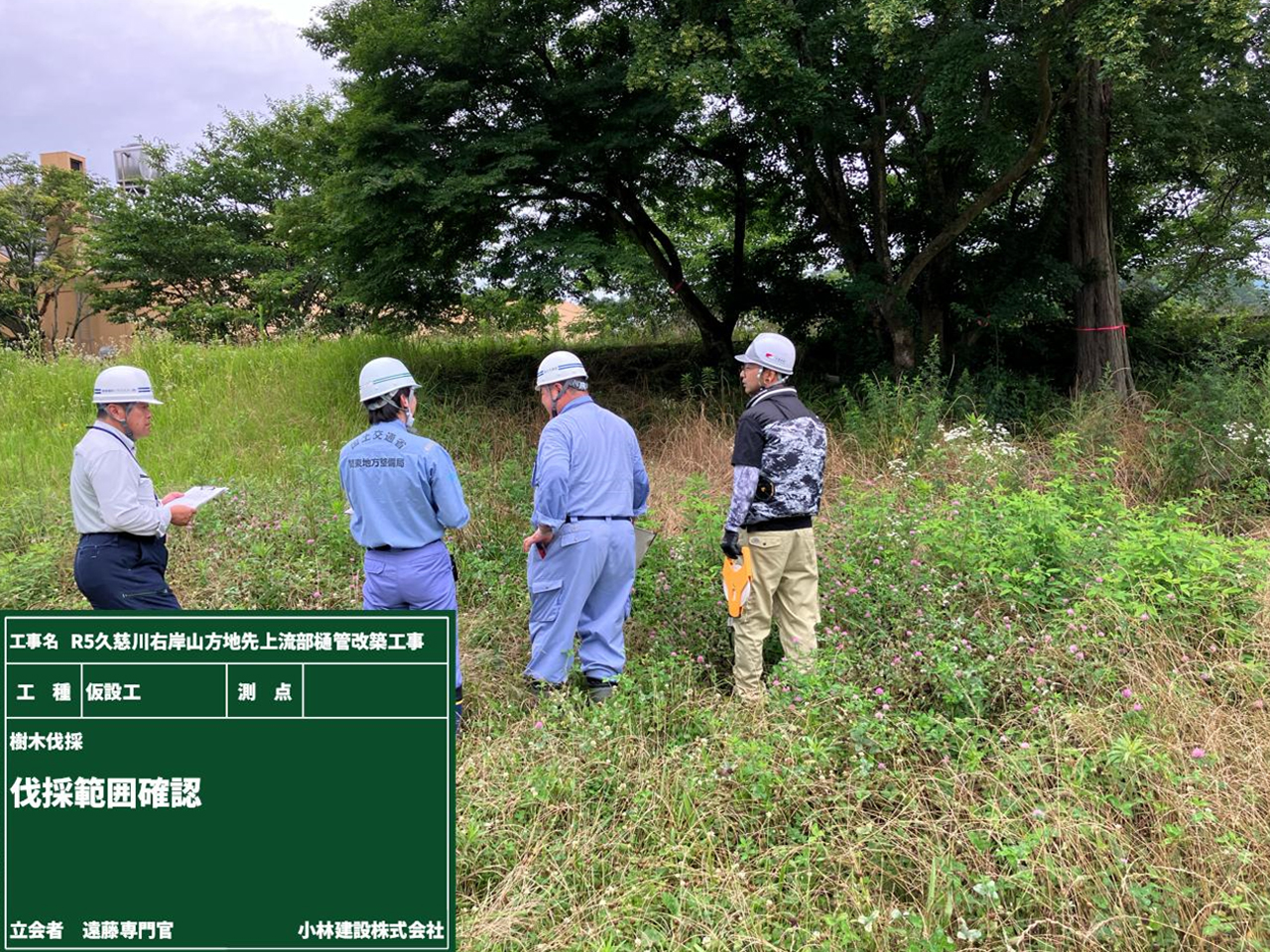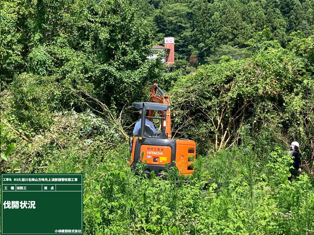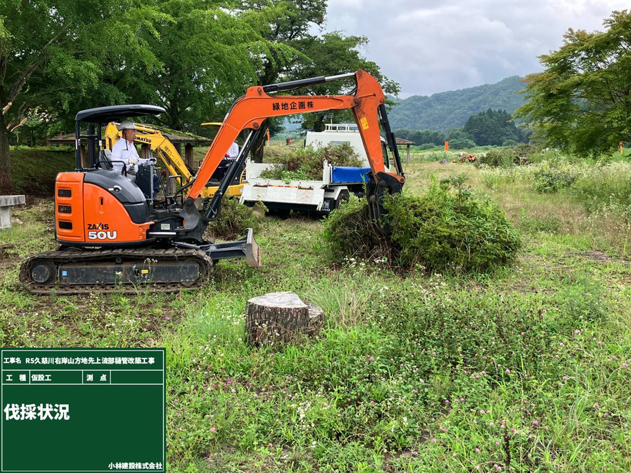 まずは伐採範囲を発注者立会のもと確認し、範囲が確定したら重機を入れて伐採をしていきます。