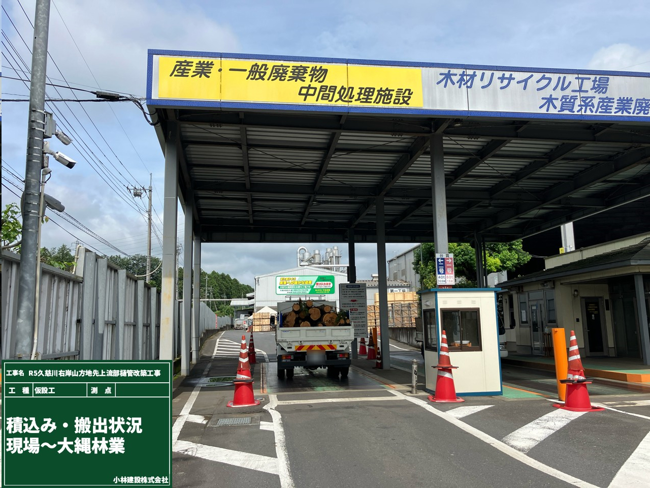 伐採した木は一体どこへ??答えはリサイクルをするために中間処理施設に搬入します。環境保全にも繋がる大切な作業ですね。