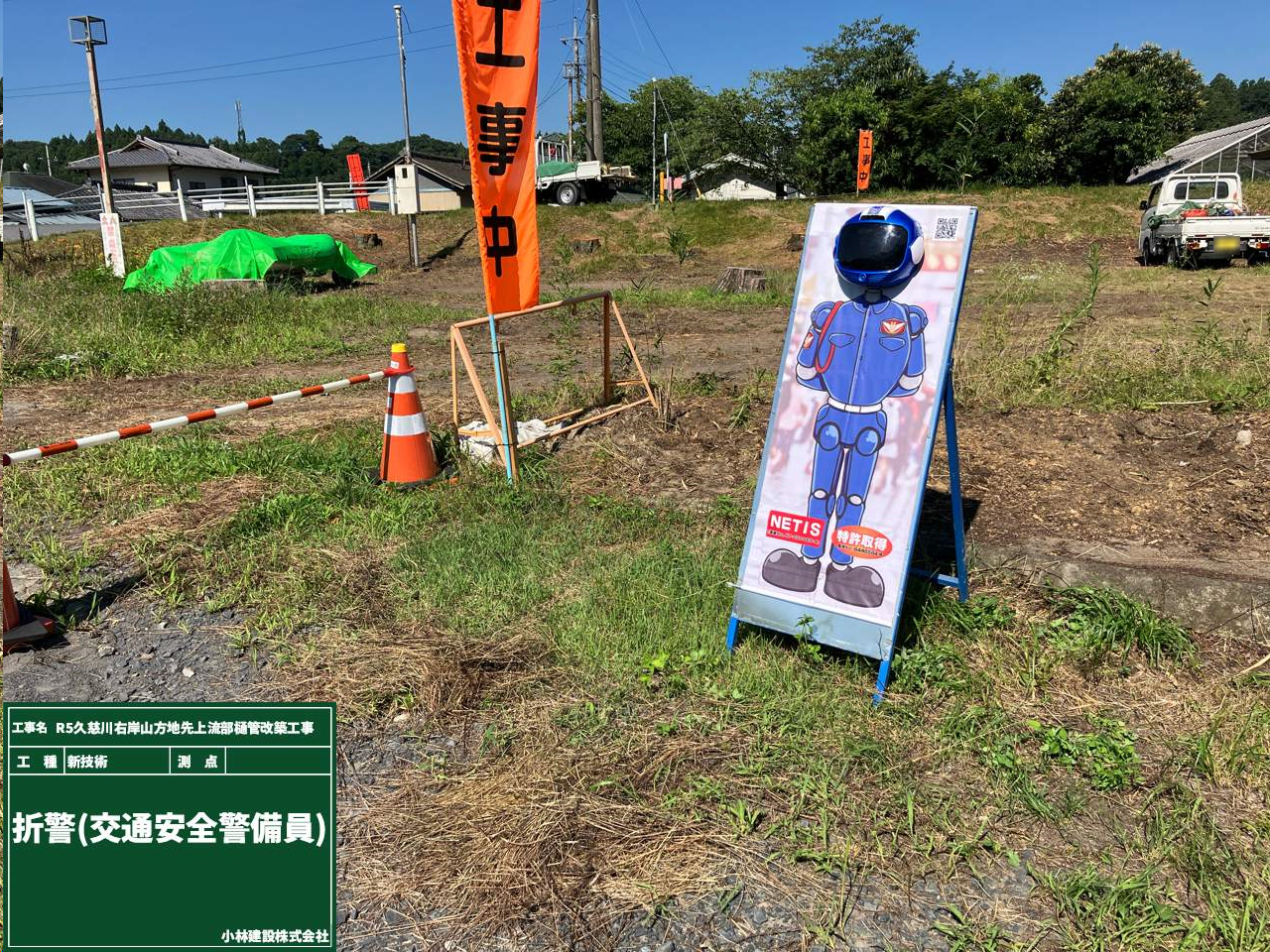 ちなみに、6枚目の写真は今回現場の警備をしてくれている「折警」さんです。これ、看板なんですよ。