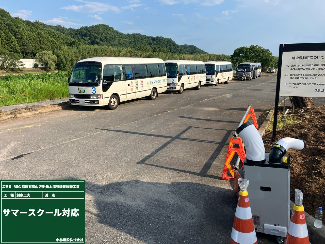 子供たちの元気な声をBGMに、私たちもパワーを貰いながら安全第一で作業を進めています!
