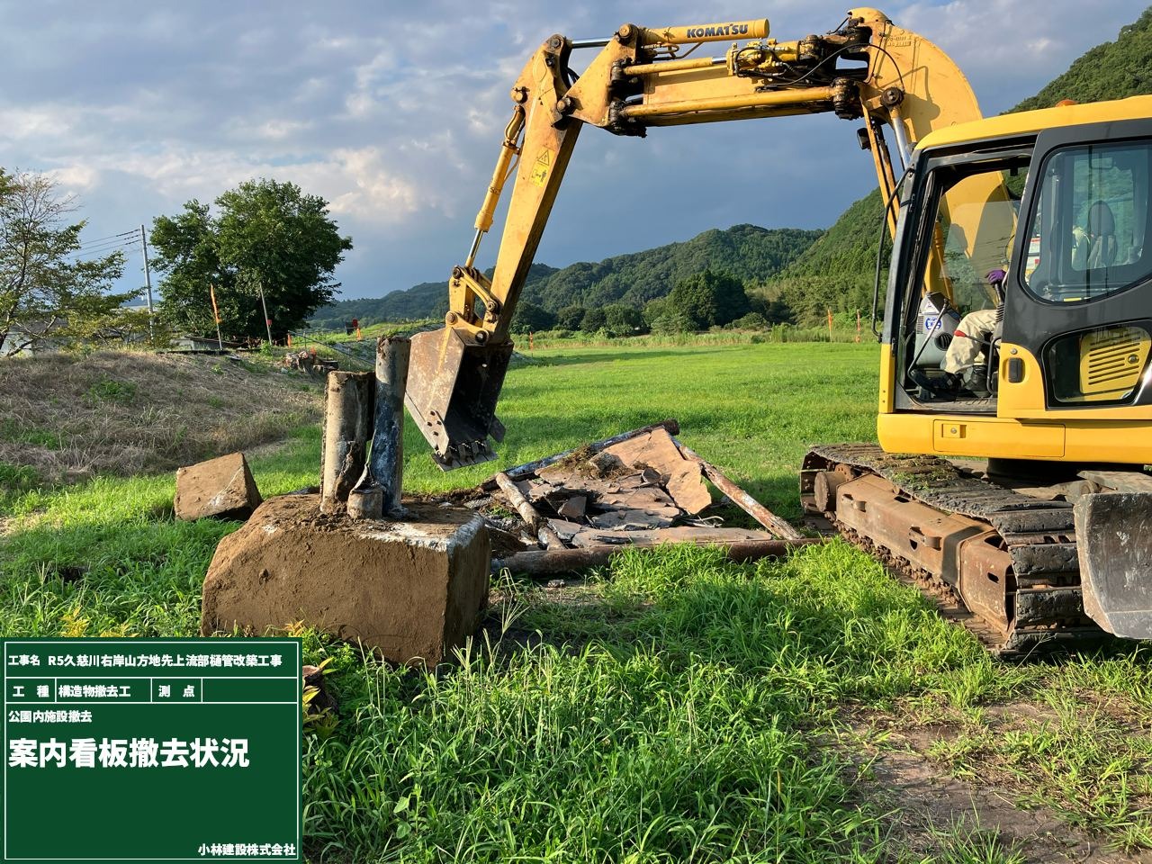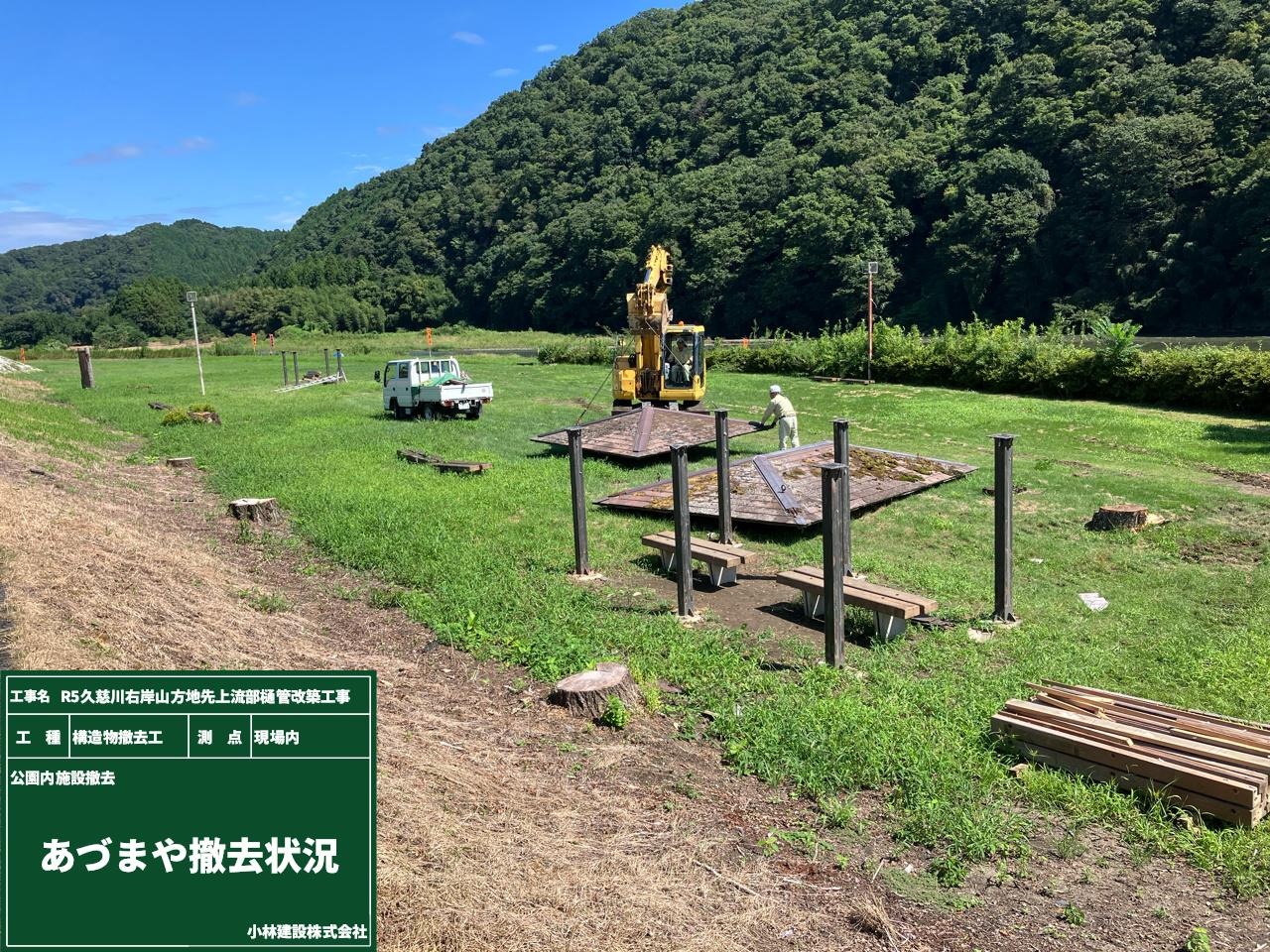 築堤と樋管改築を行うにあたり、公園内の既存施設を撤去します。