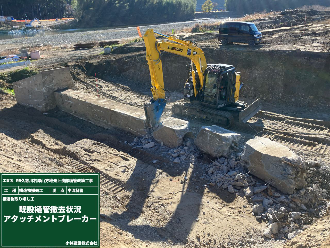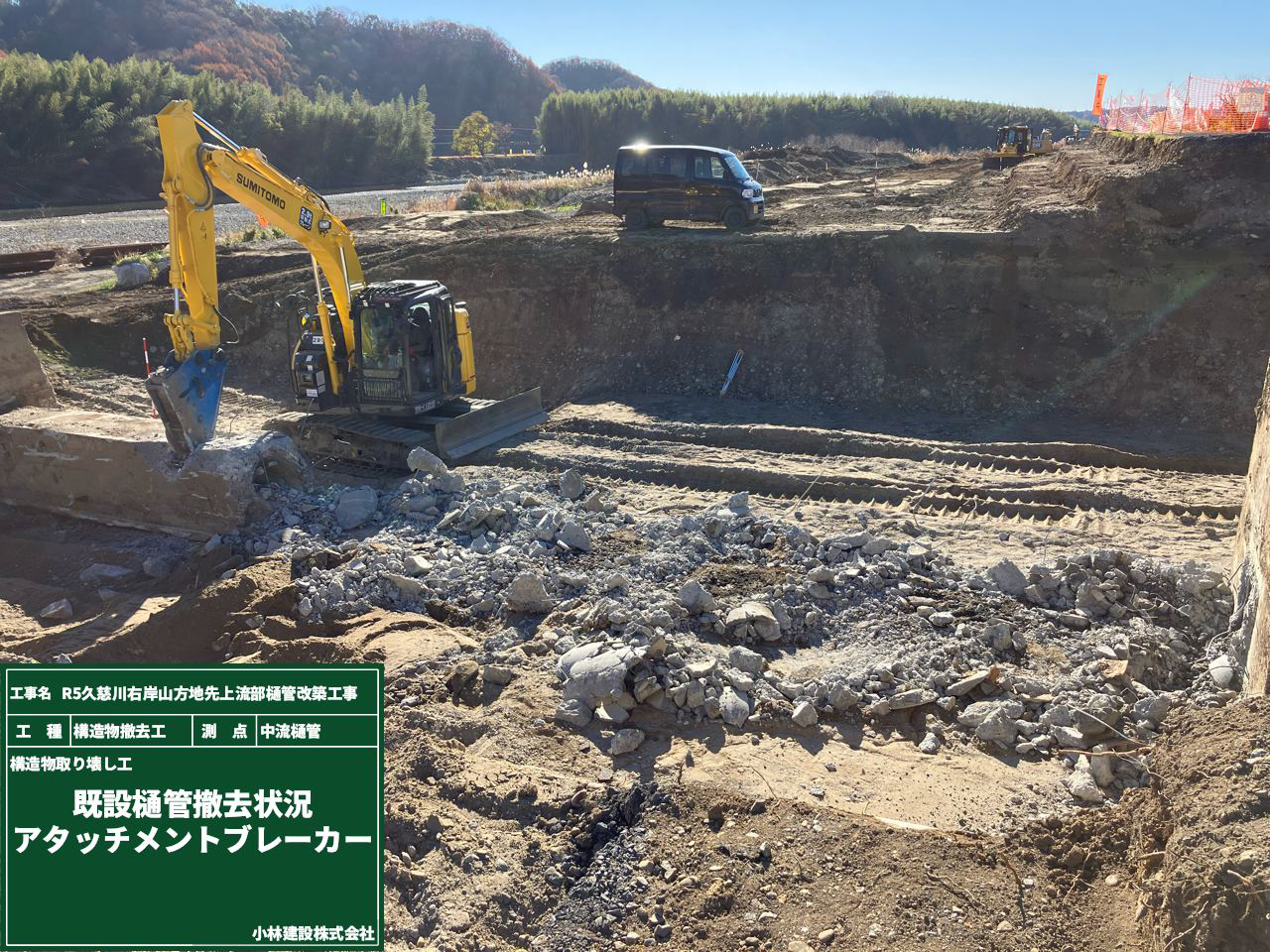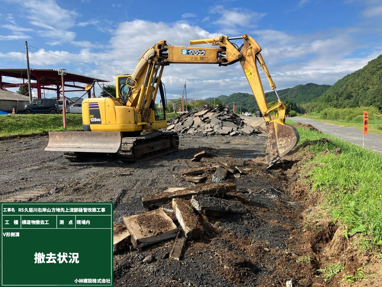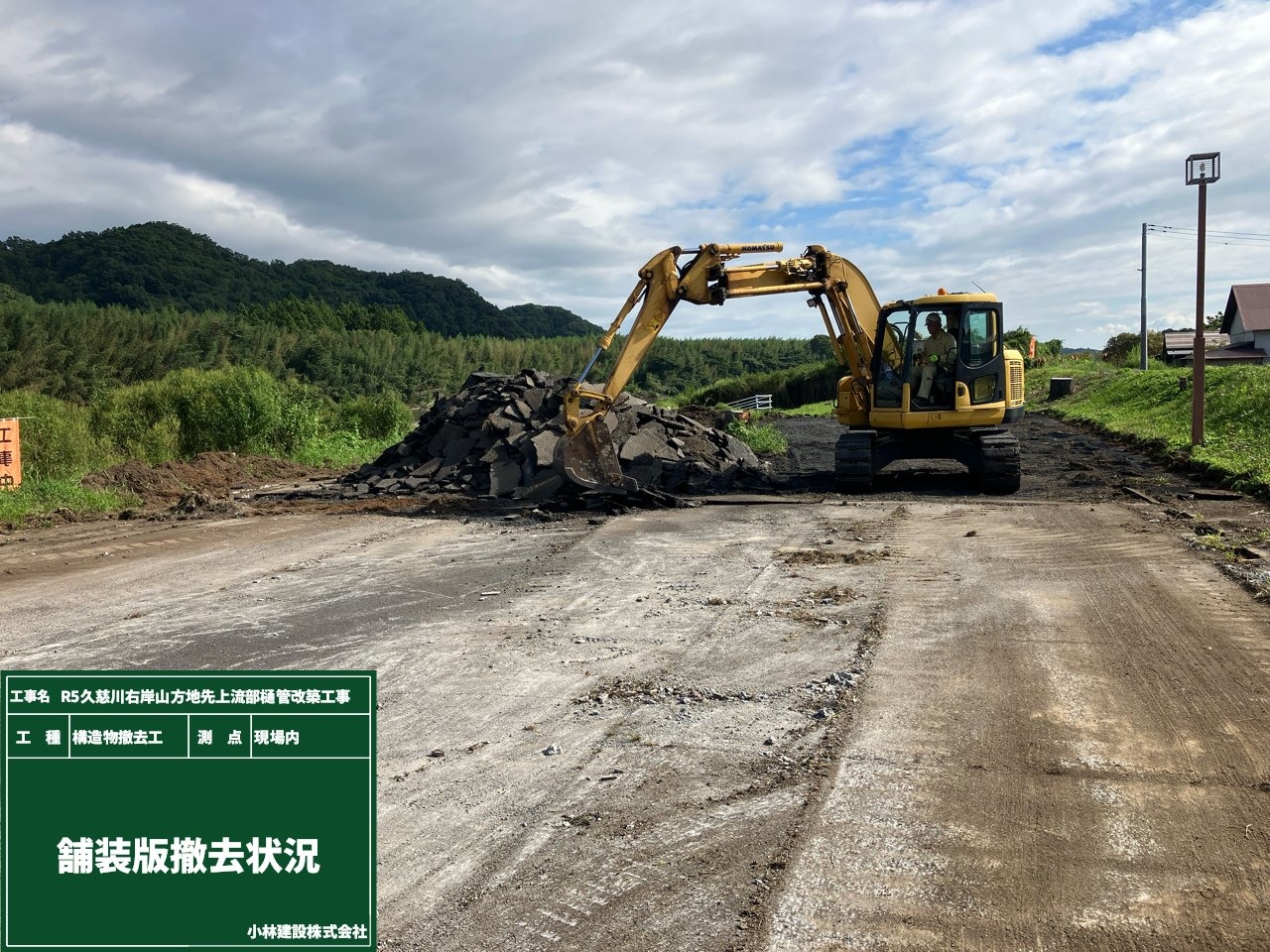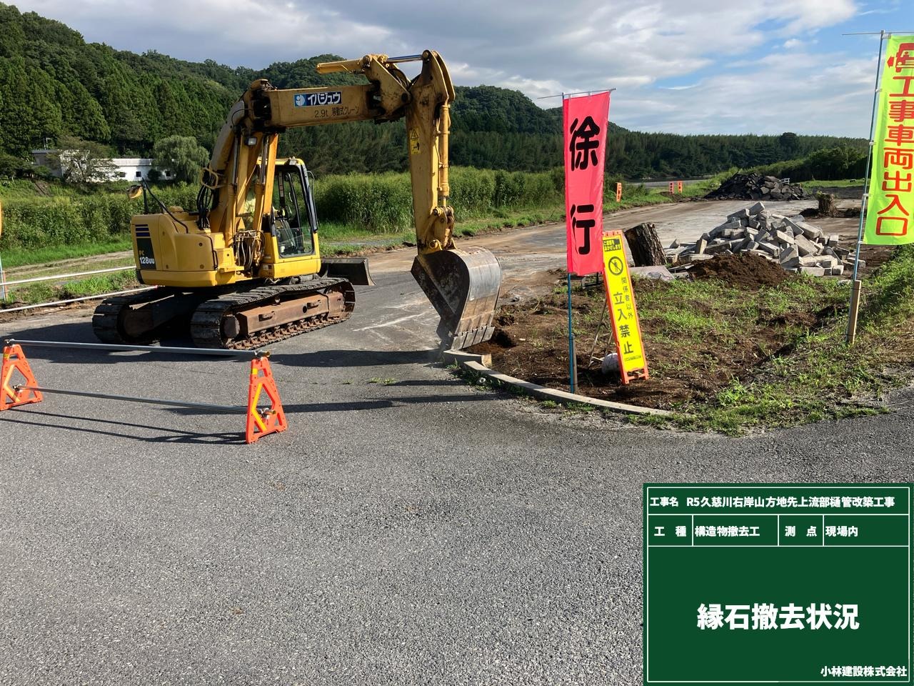 樹木の伐採、除草作業、ドローンでの測量を終え、いよいよ撤去がスタートしました。