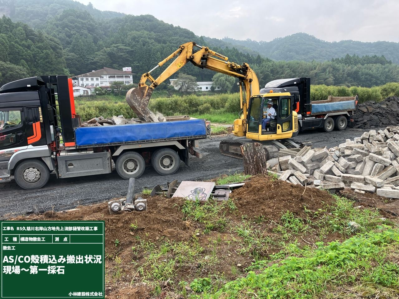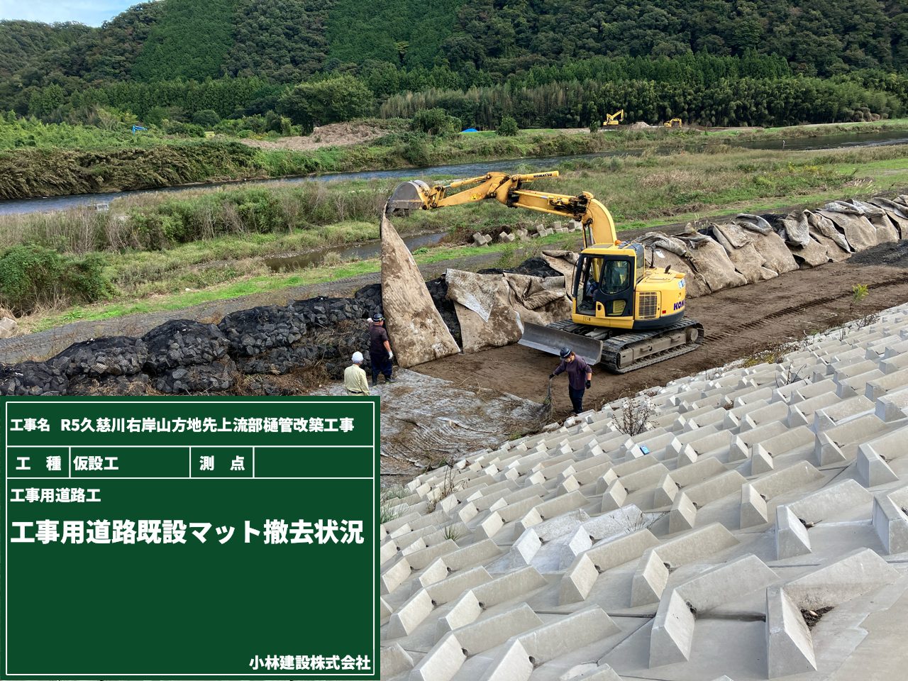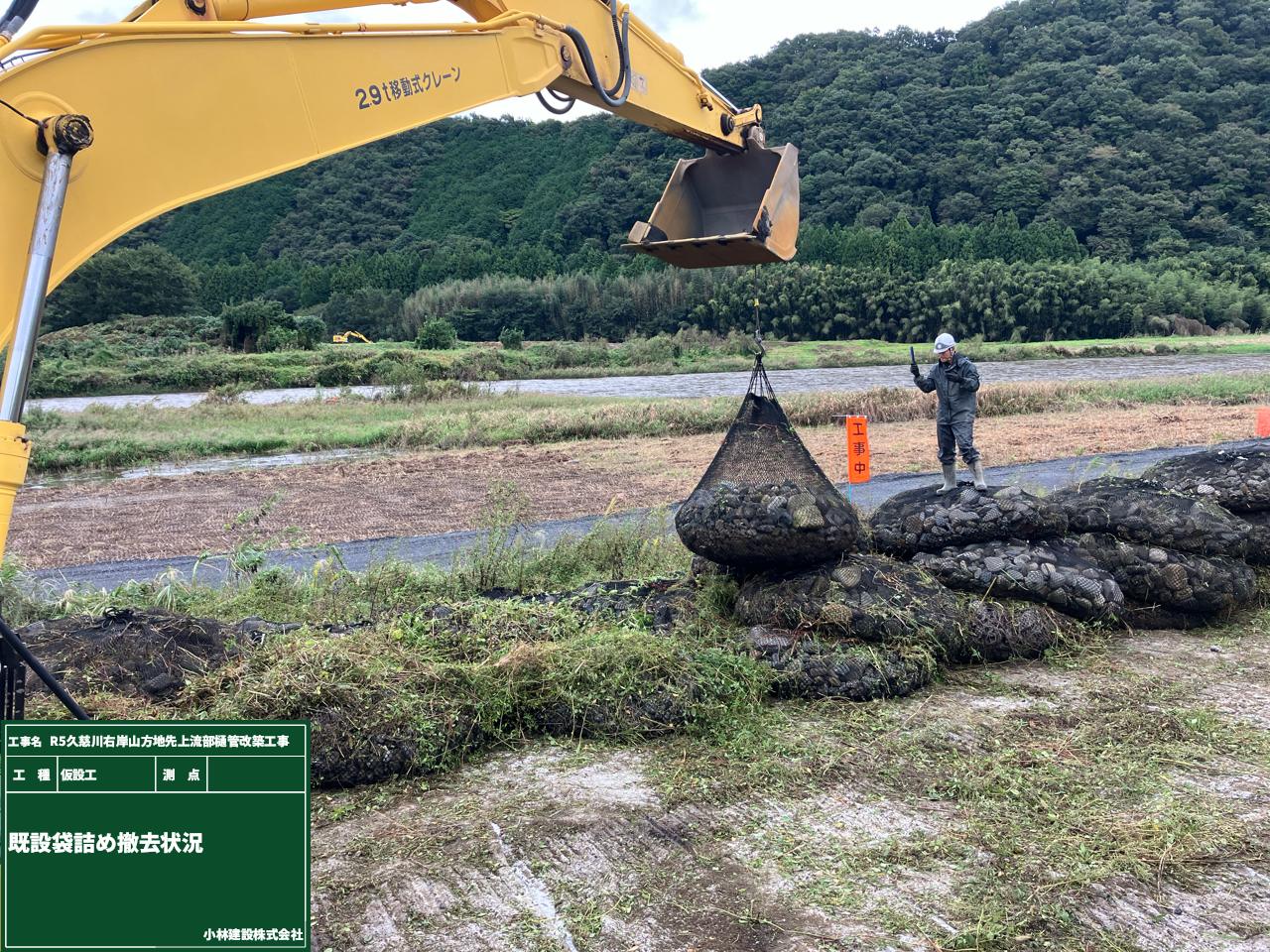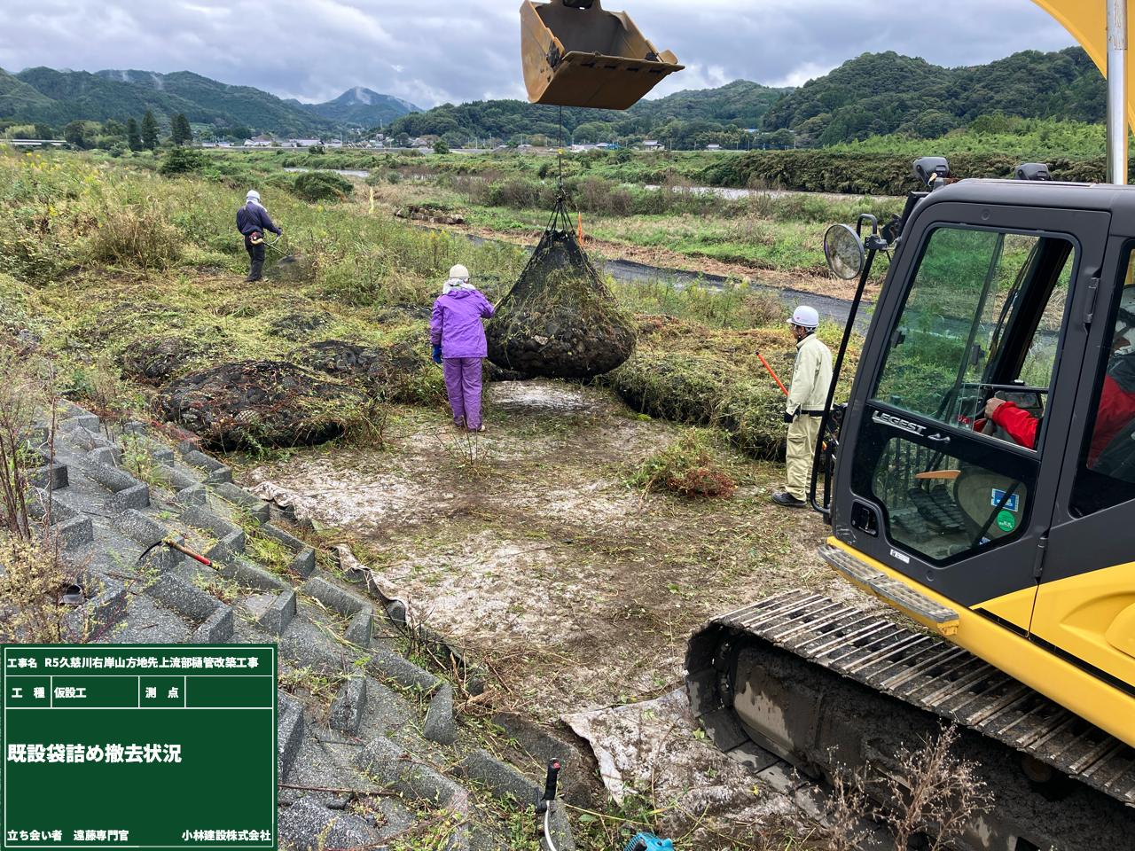 天候にも恵まれて無事に工事用道路範囲の袋型根固め2tの撤去完了しました。次の工程に進みます。