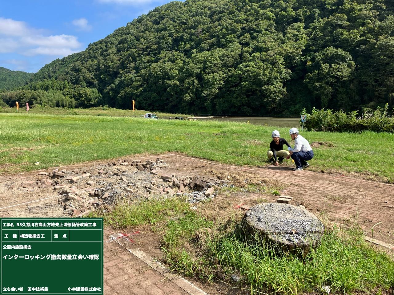 今回は公園内施設のブロックの撤去をするための立会確認です。