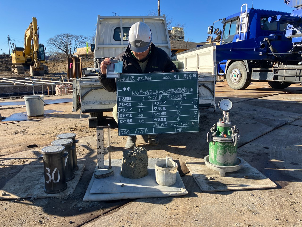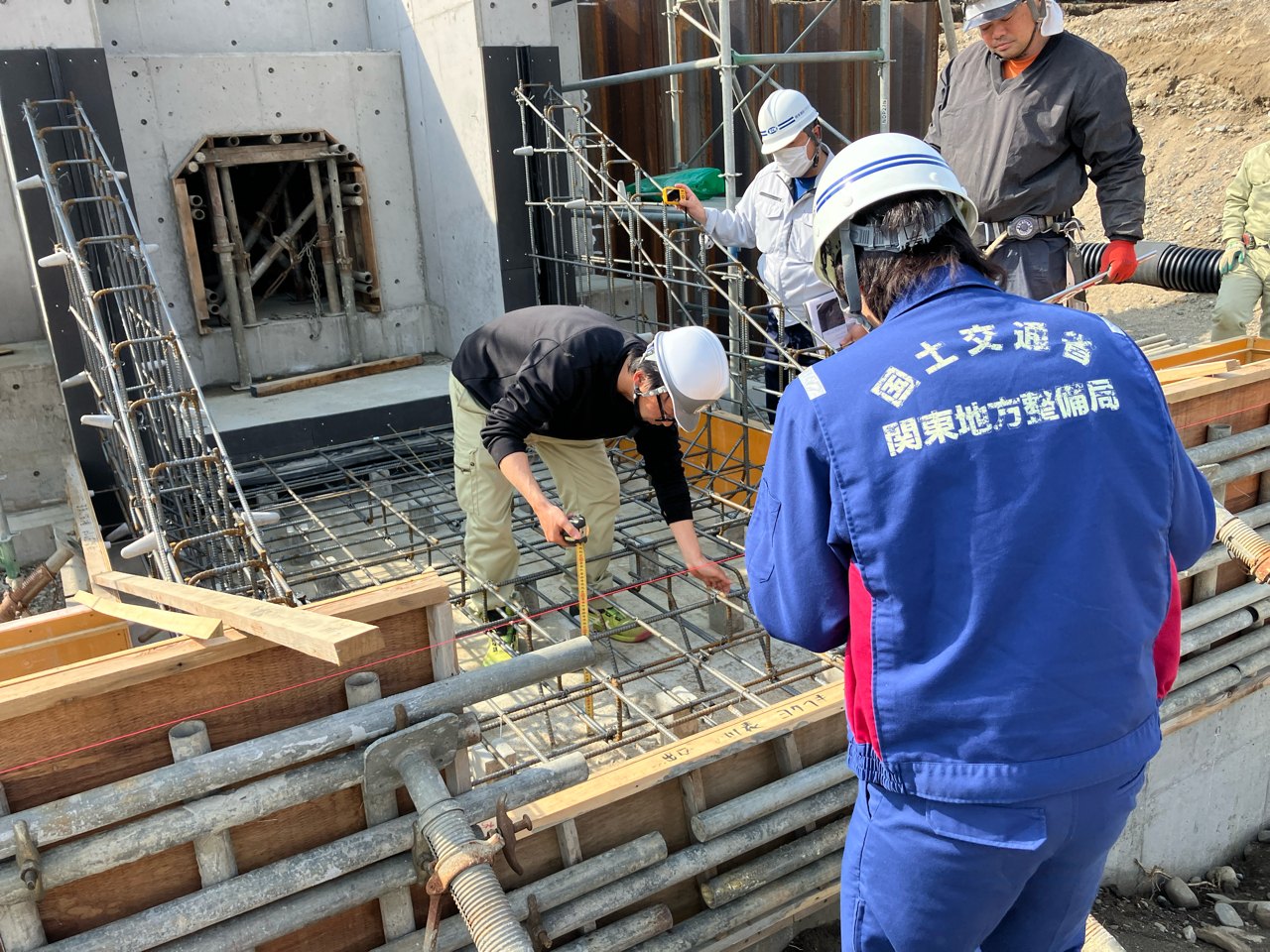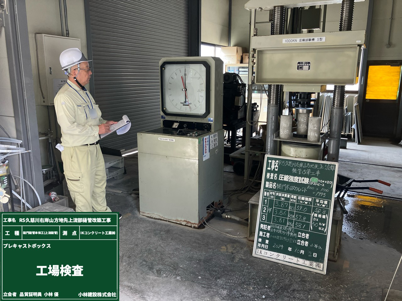 今回はプレキャストのボックスカルバートを使用するため、製造工場での品質検査となりました。