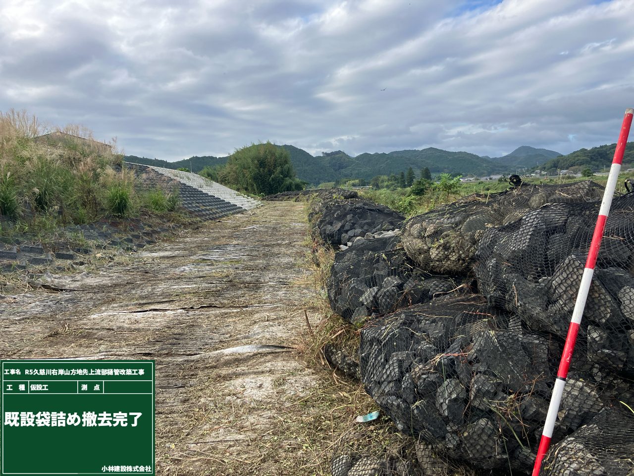 撤去した袋詰めは、発注者のほうで再利用する他工事を検討していただき、決まり次第搬出する予定です。