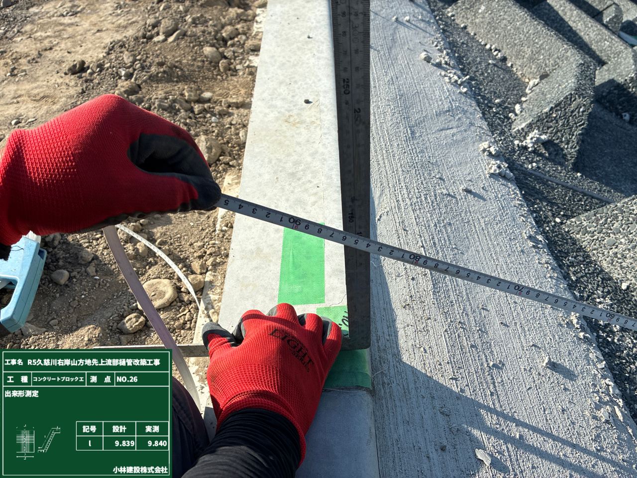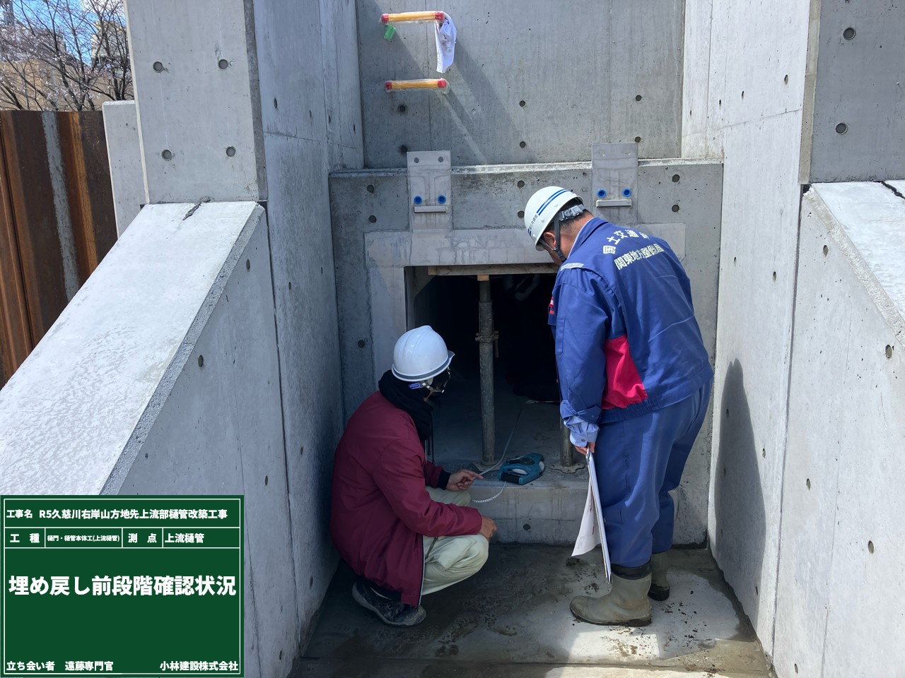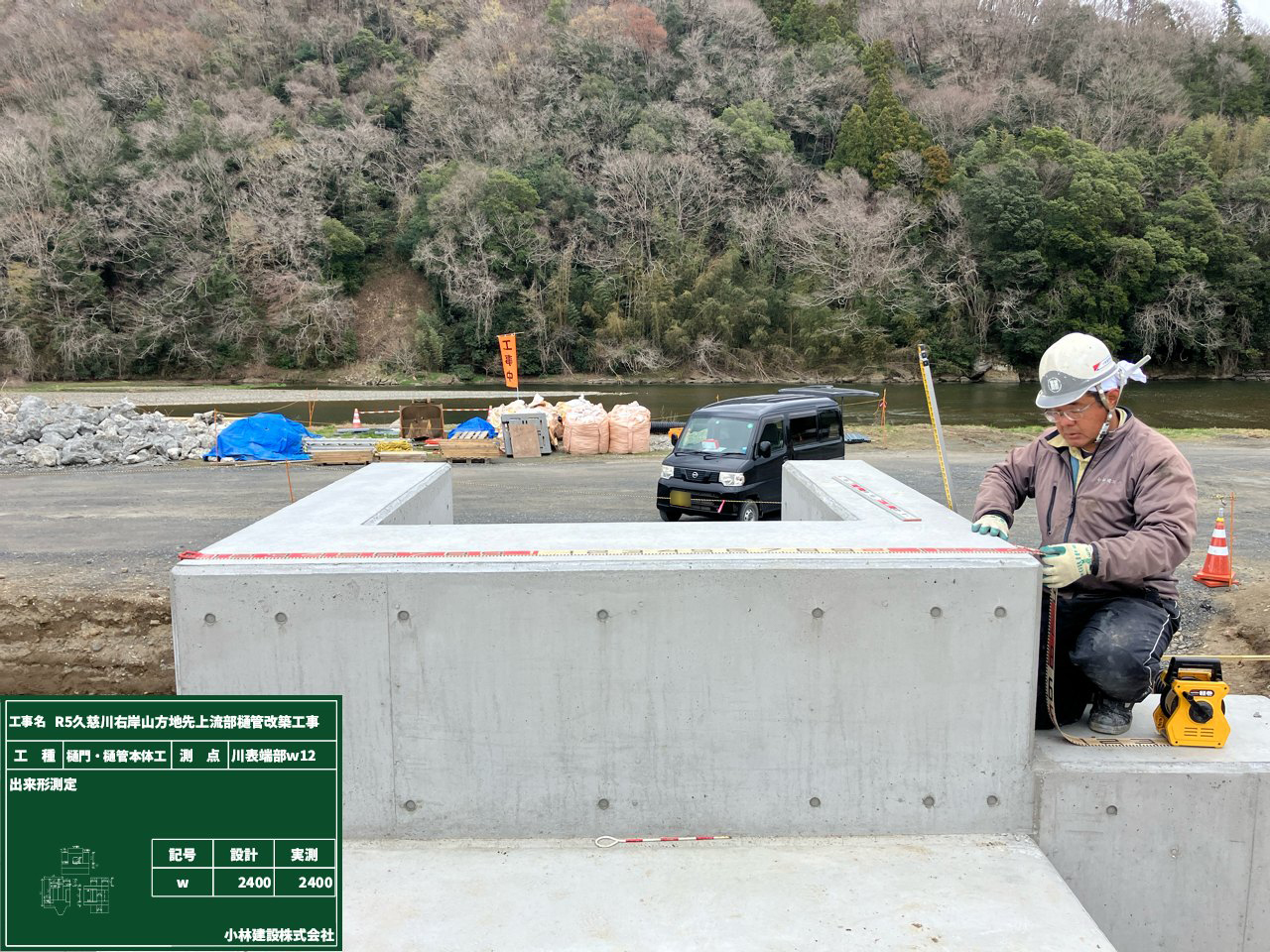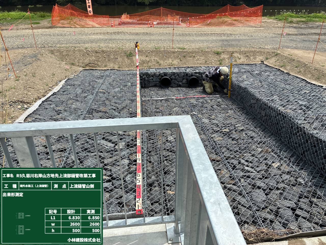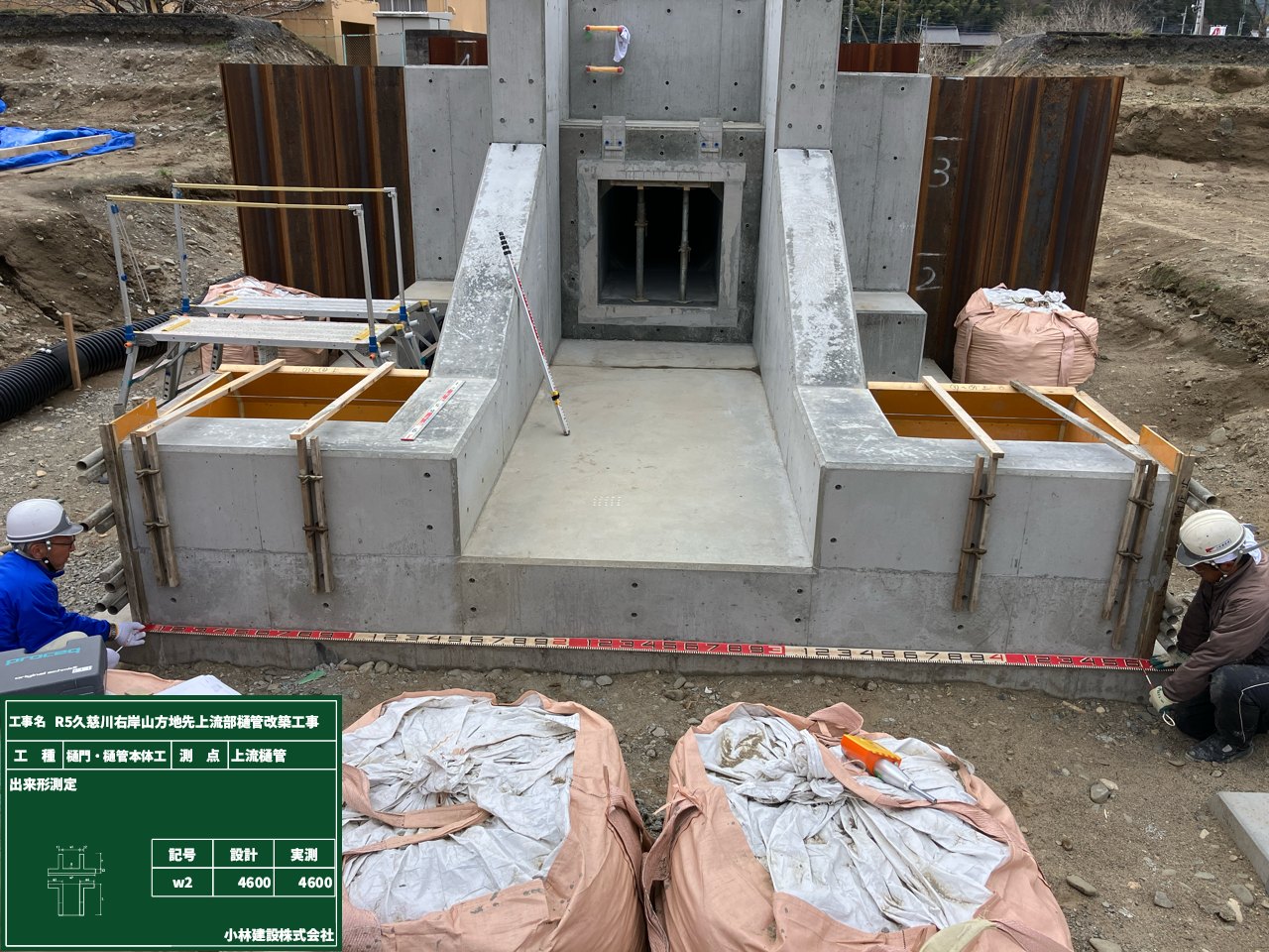 上流樋管の作業が完了したので、出来形測定を行いました。
