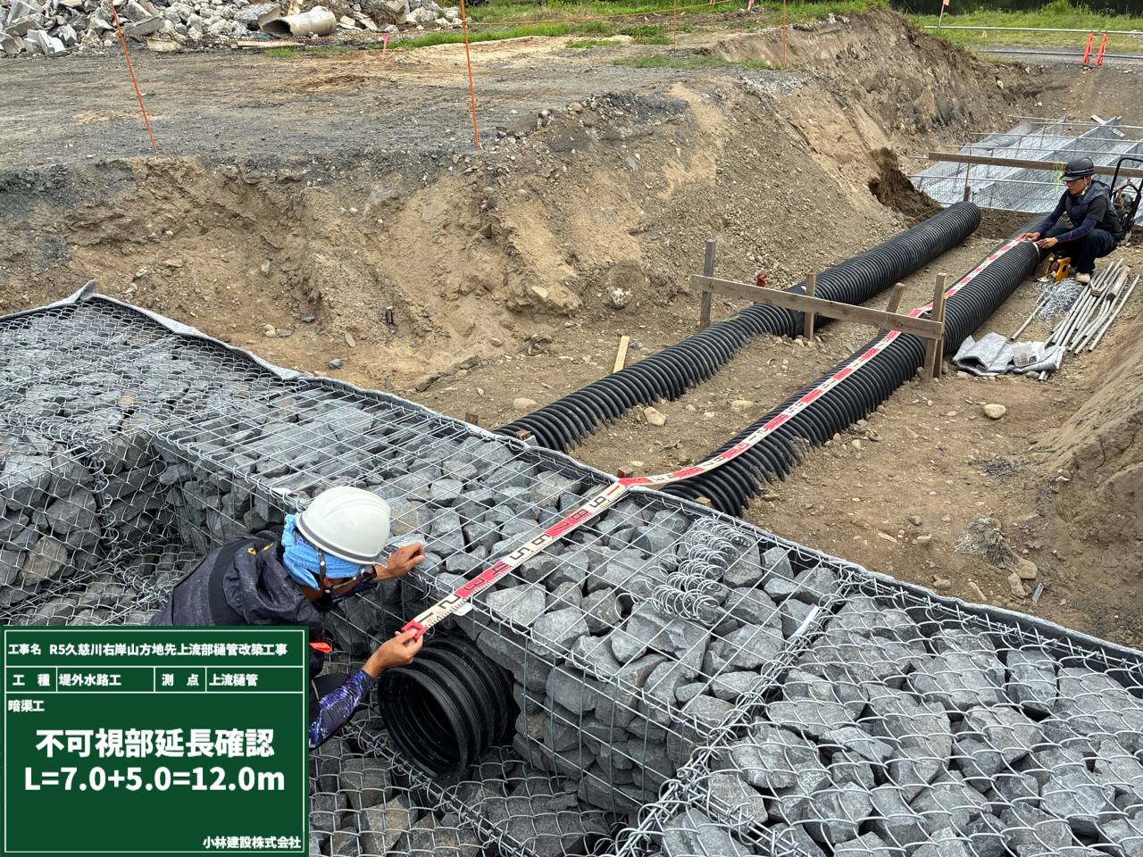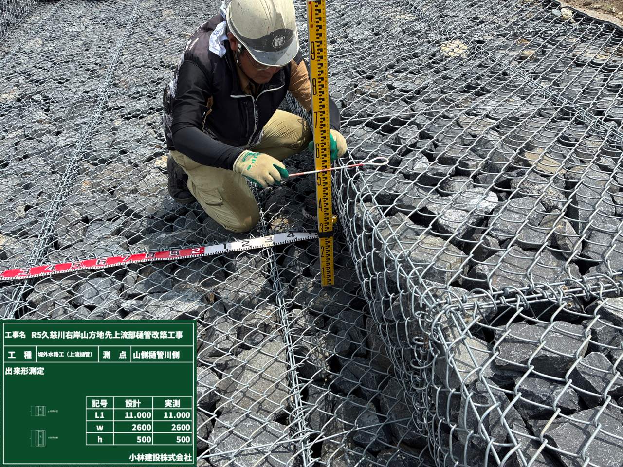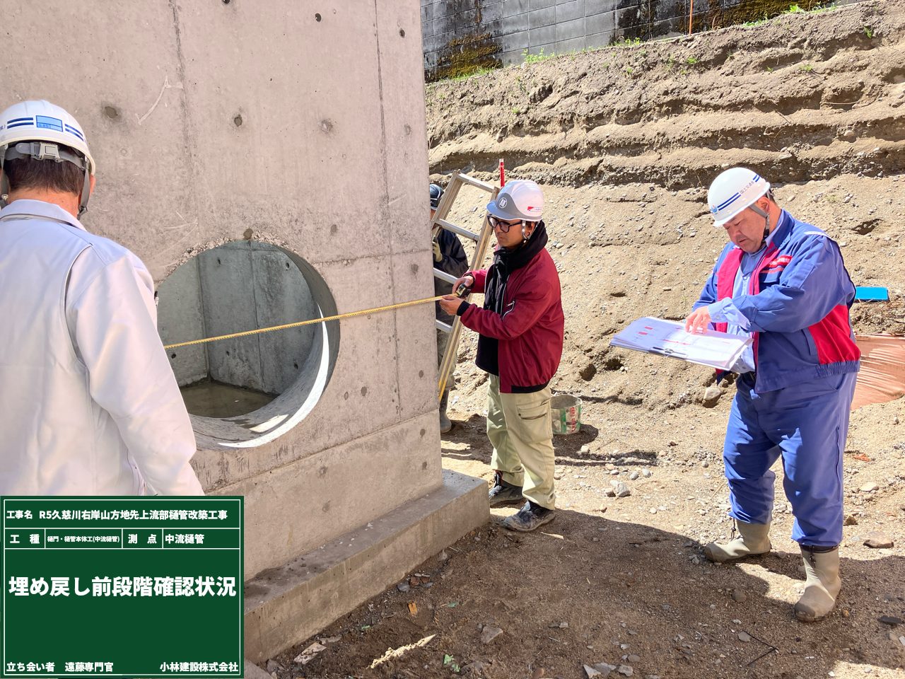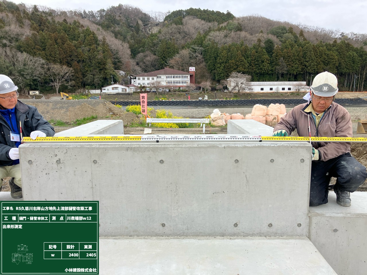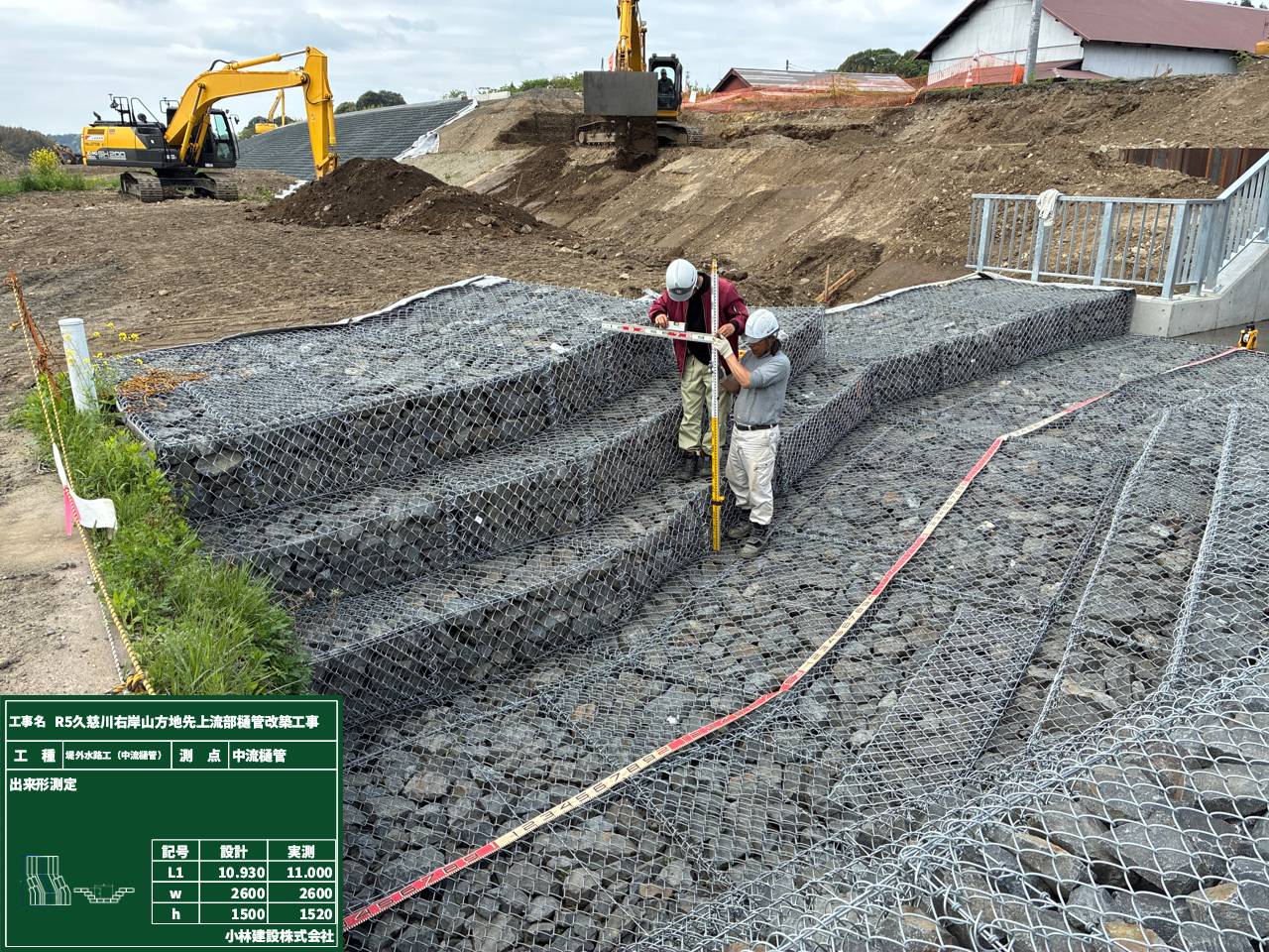 上流樋管の作業が完了したので、出来形測定を行いました。