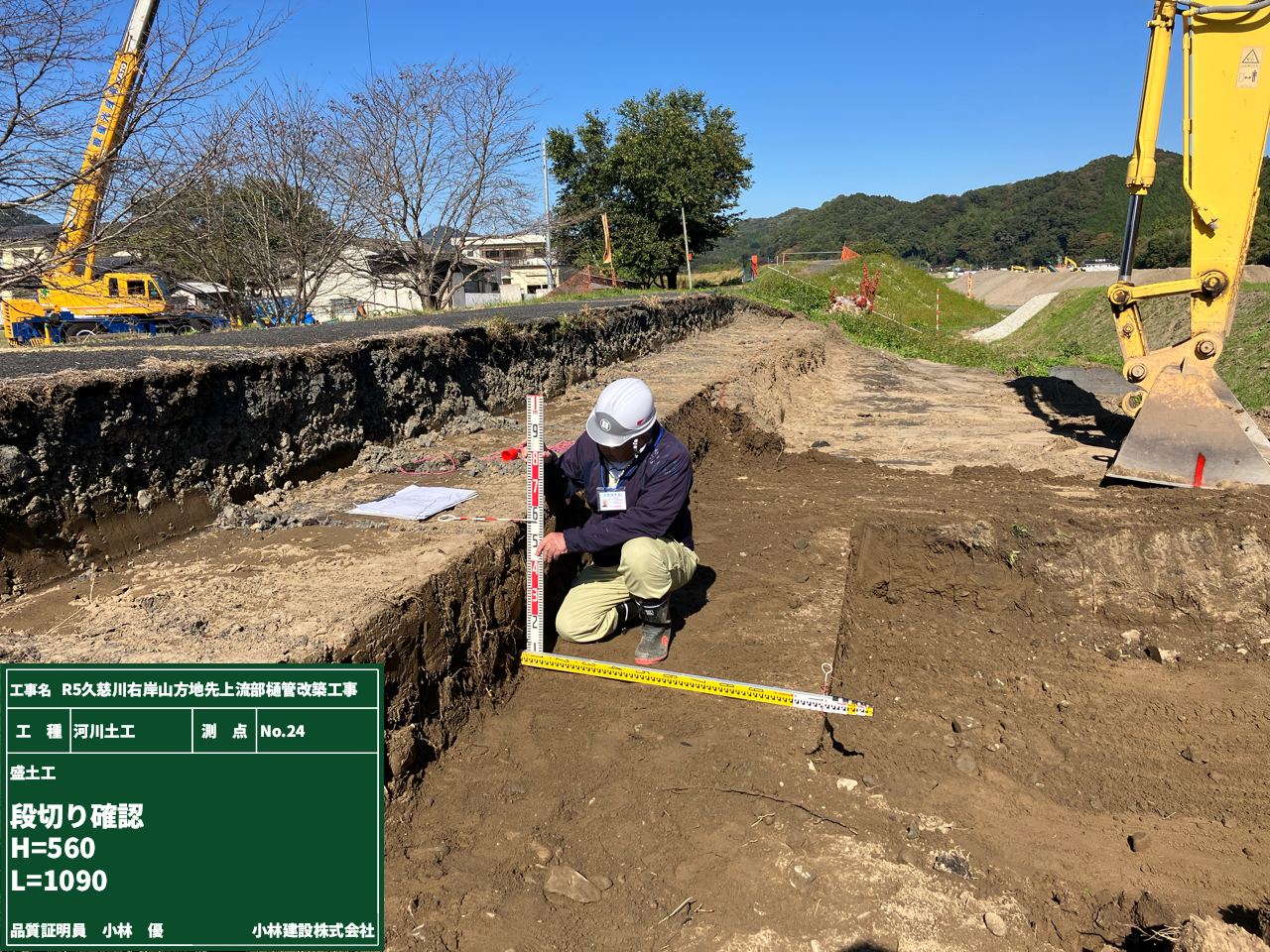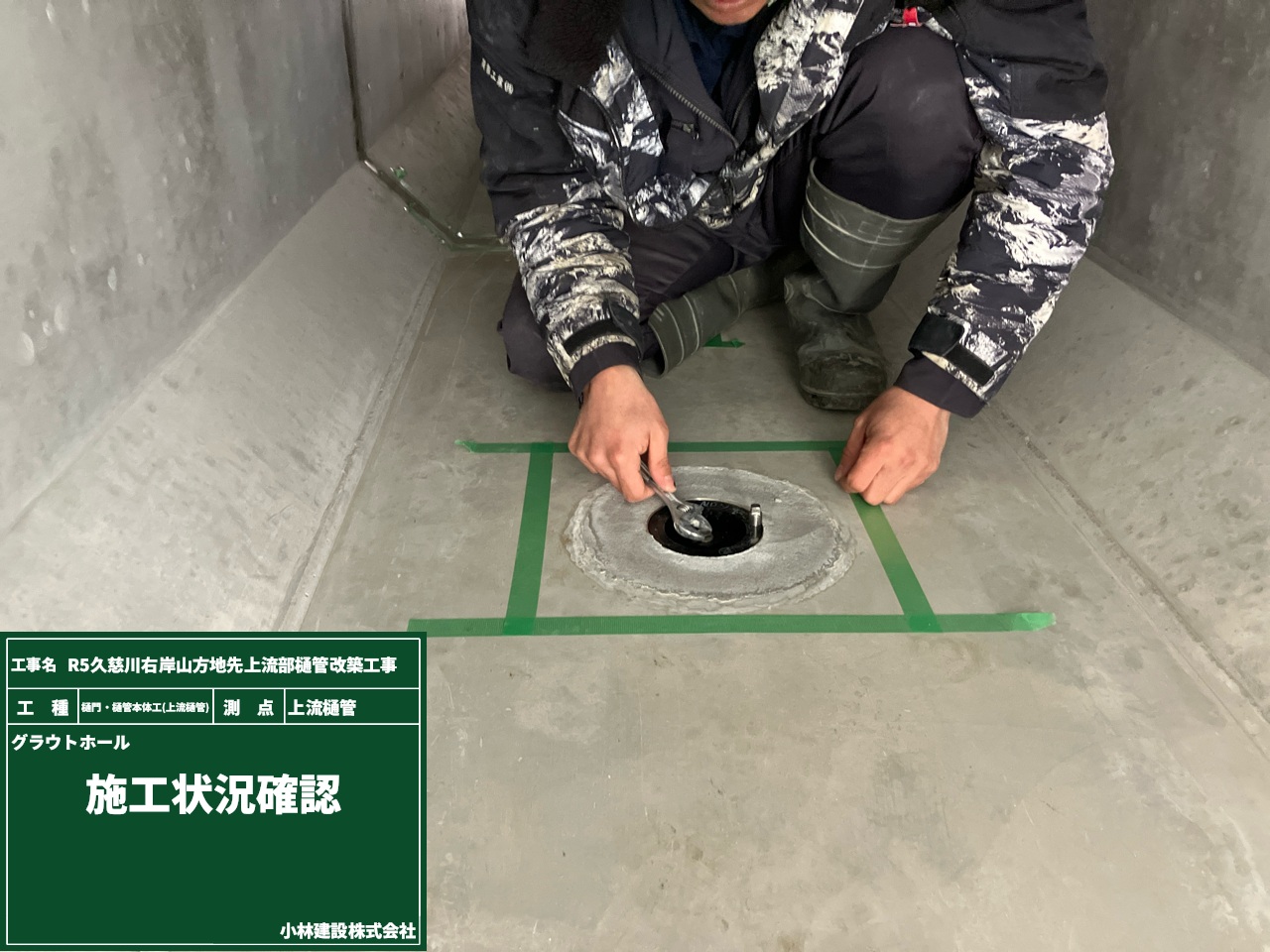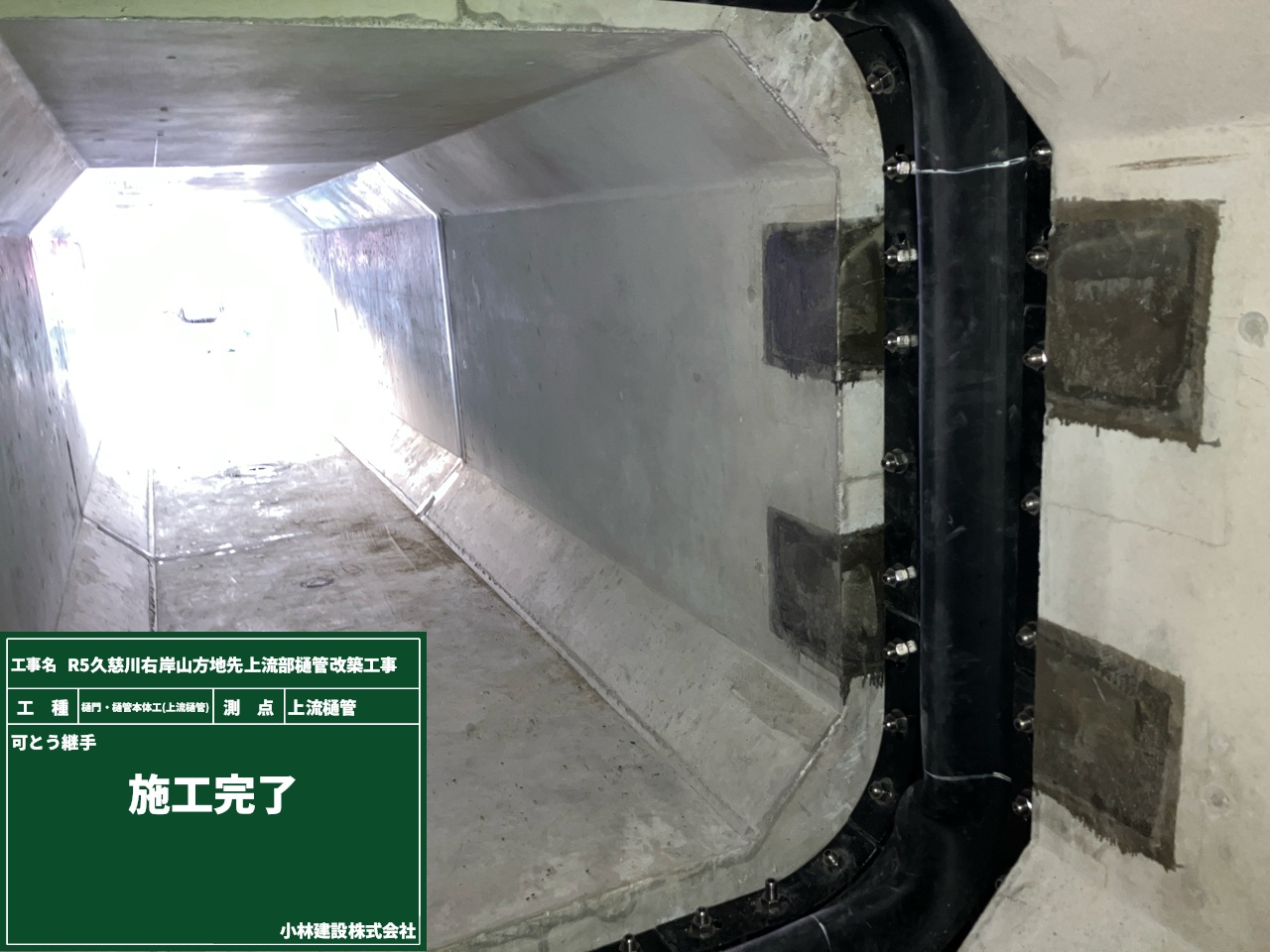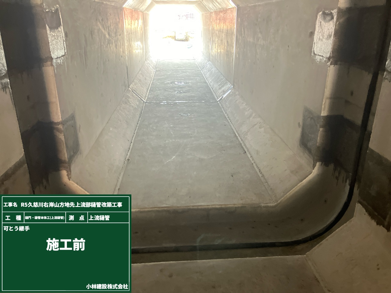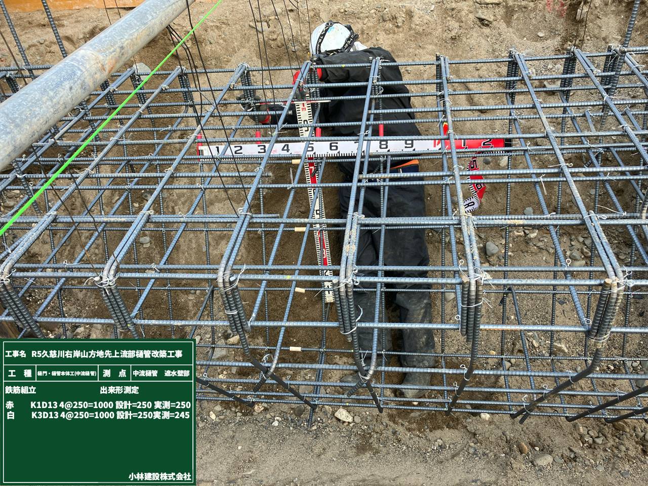 上流樋管の作業が完了したので、出来形測定を行いました。