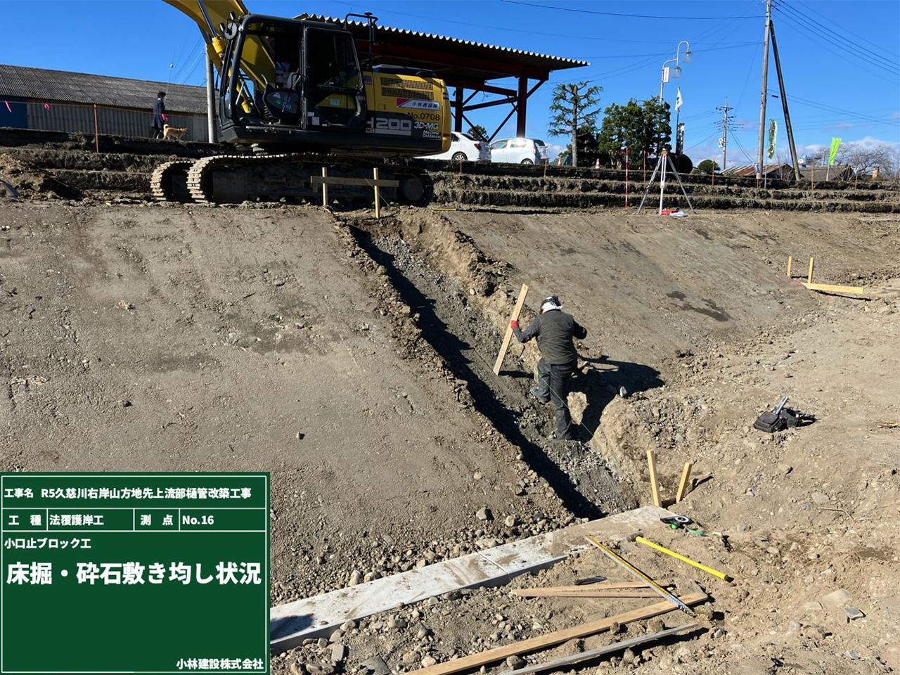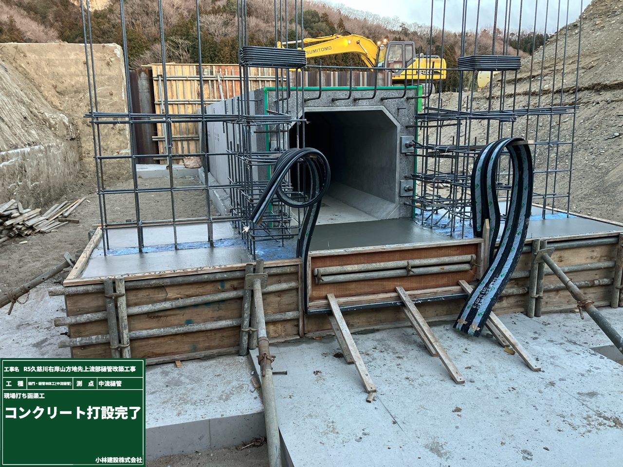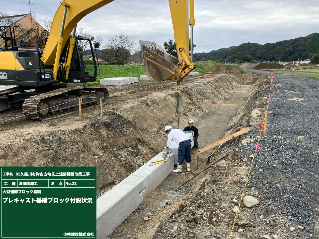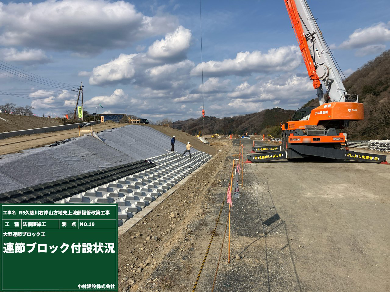 ここ最近の現場ホームページで作業の様子をご紹介していましたが、ついに上流樋管の場外水路工と、大型連節ブロックの作業が完了しました!!