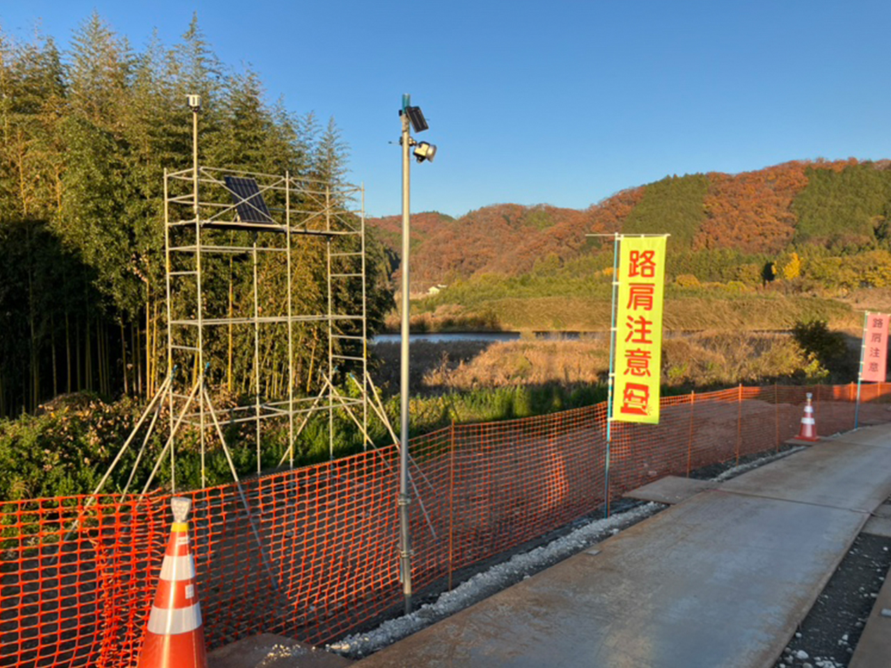 従来は歩行者への案内を警備員が対応をしていたのですが、音声付きの看板が代わりに対応してくれます。