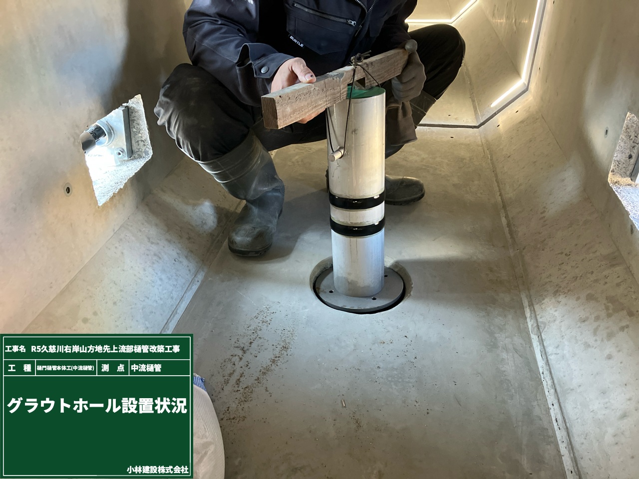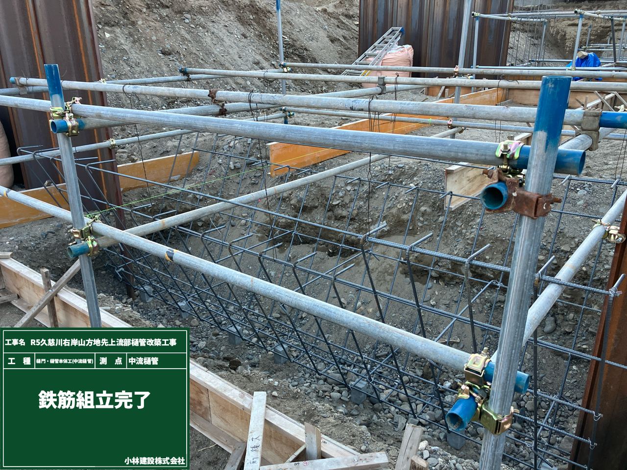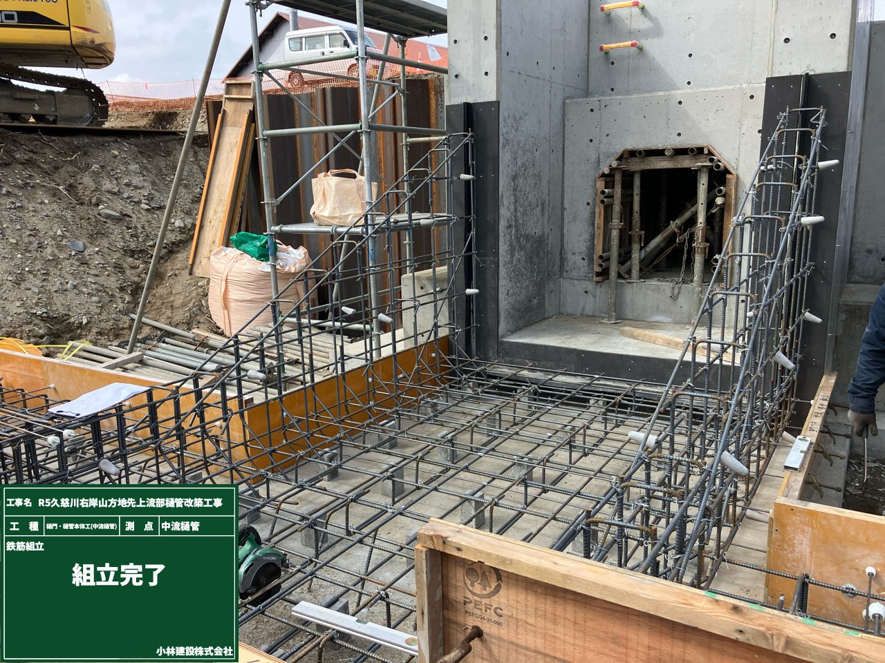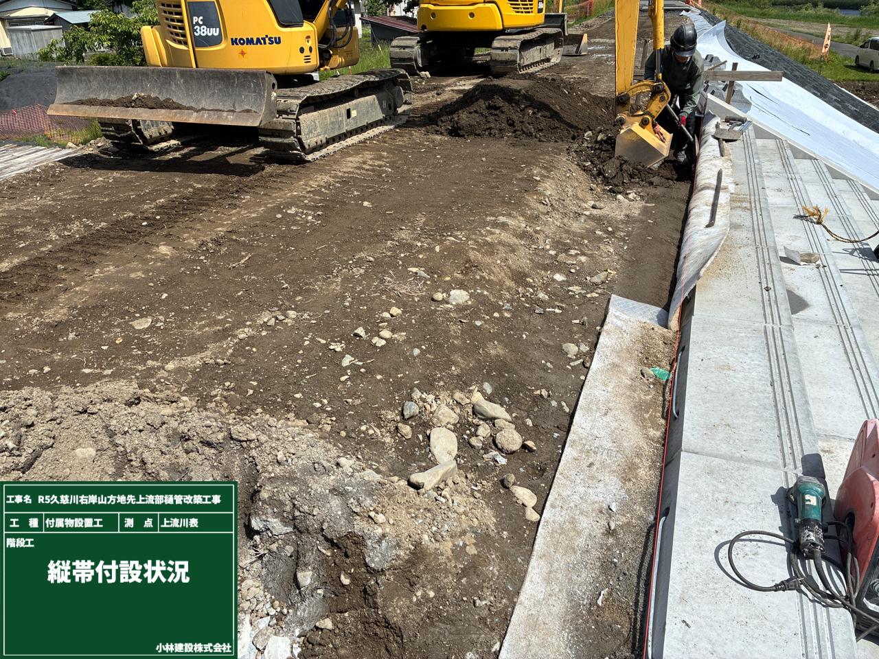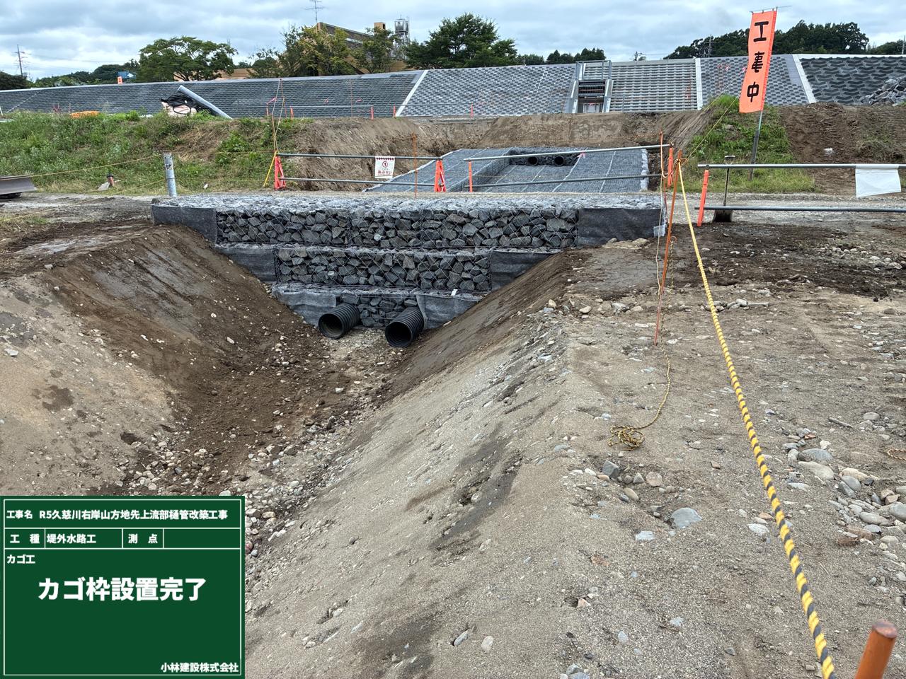 設置完了写真の暗渠管は、一番川に近い場所なので、最下段にピタっと収まっています。