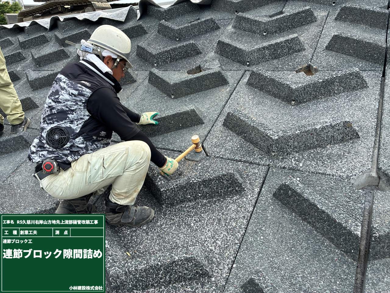 この作業は実はとても大事で、ブロックの安定性を高めて土砂の流出を防いでくれます。