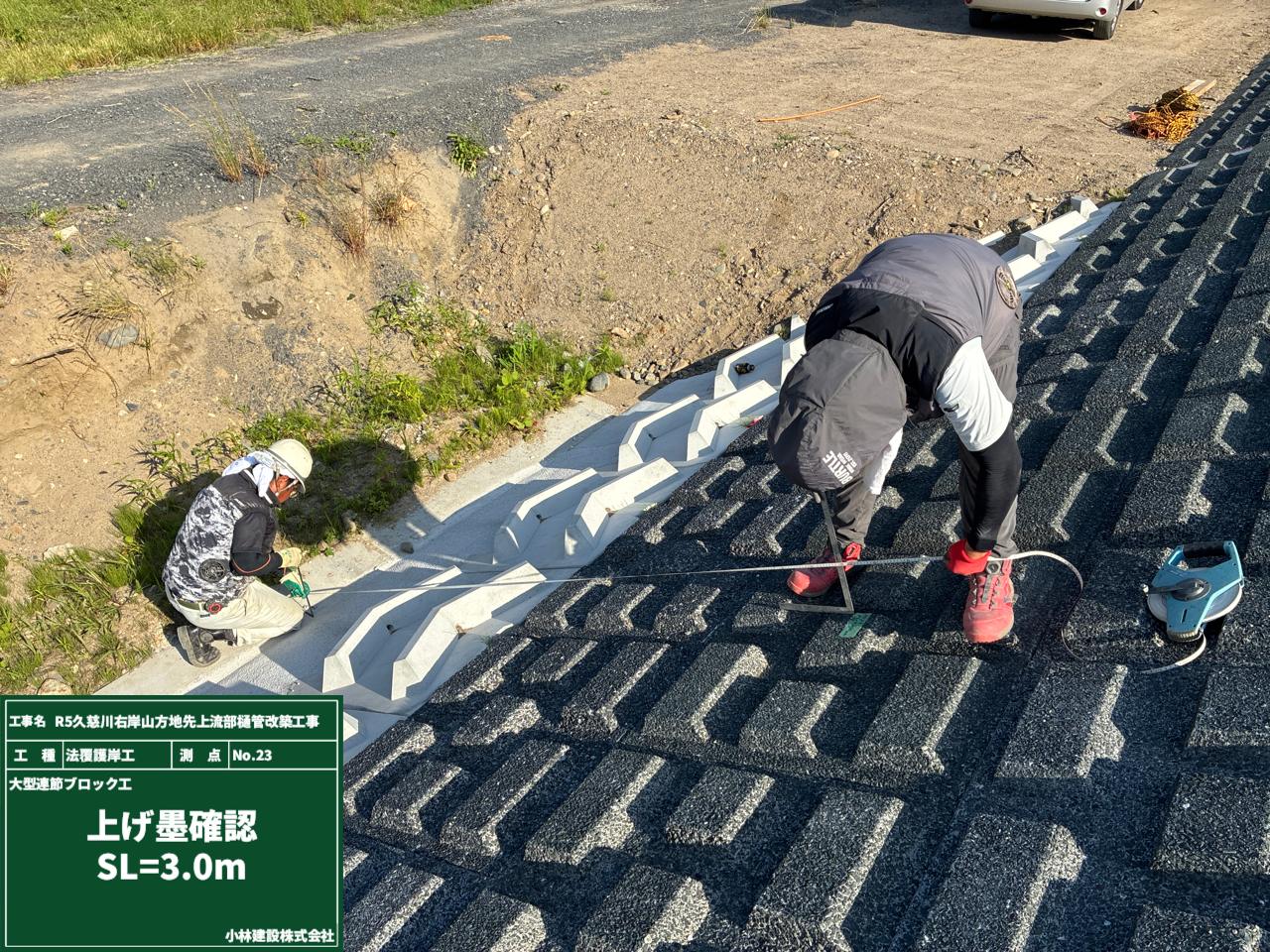 もぐら叩き・・・いやいや連節ブロックの施工が完了したので、出来高測定をしているところです。
