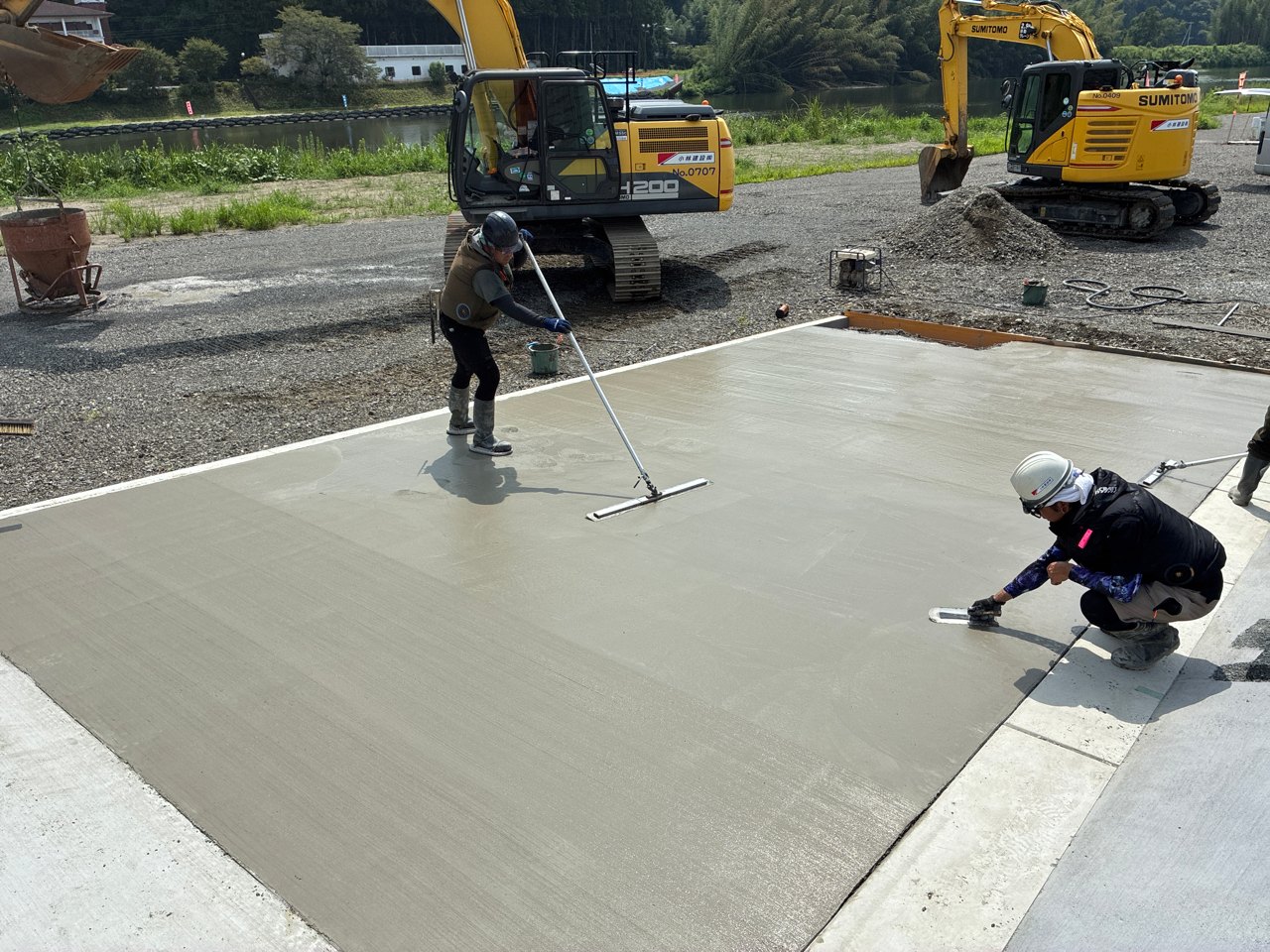 生コンクリートを流し入れたら均し作業に入るのですが、、、3枚目の写真を見てください!この職人技!!